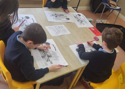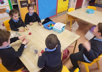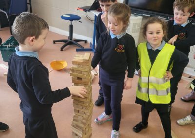 Senior Infants are enjoying the topic of The Estate Agents in Aistear this January. We have had fun in role as the estate agent or customer. Appointments have been made for viewings in small world. In construction area there have been one and two storey buildings, exploration with large Jenga blocks, building forts with Polydrons.