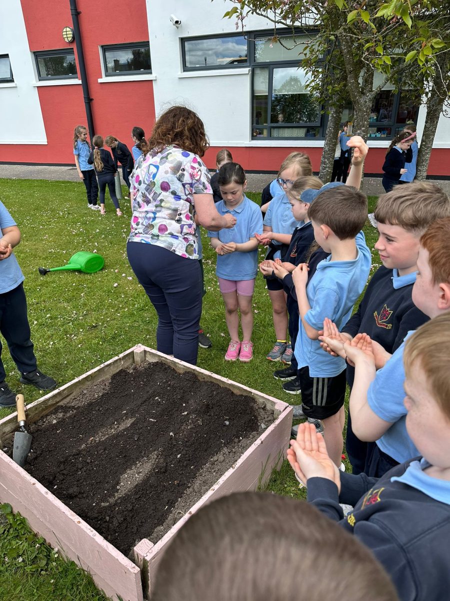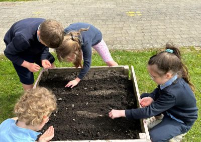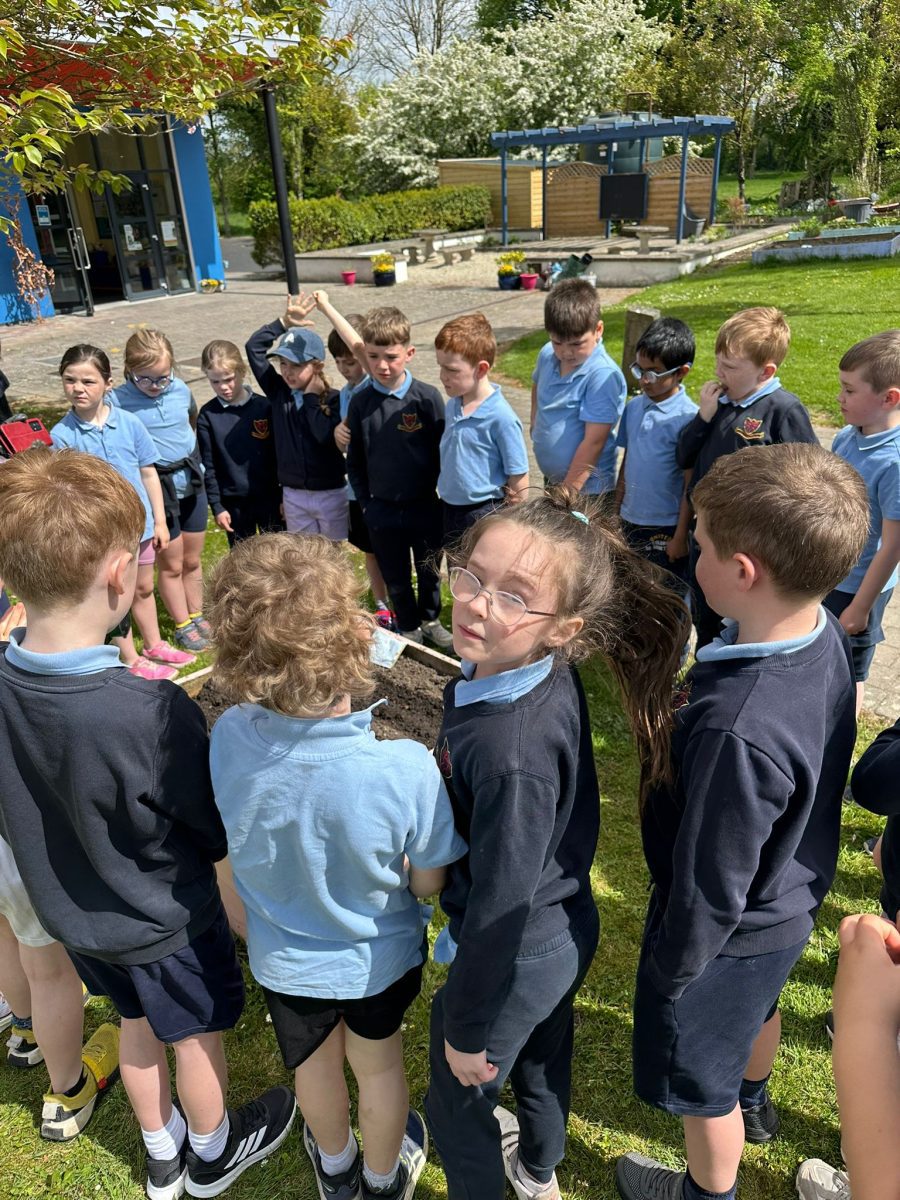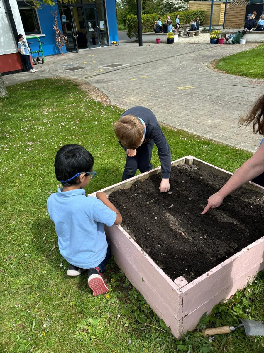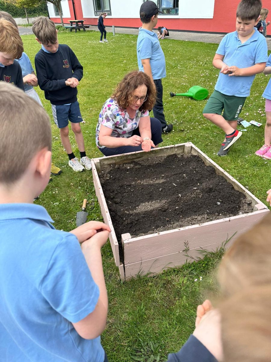 We are so lucky to have Mrs Lynch’s knowledge of growing vegetables. Here is helped 1st class learn how to plant and grow Radish.