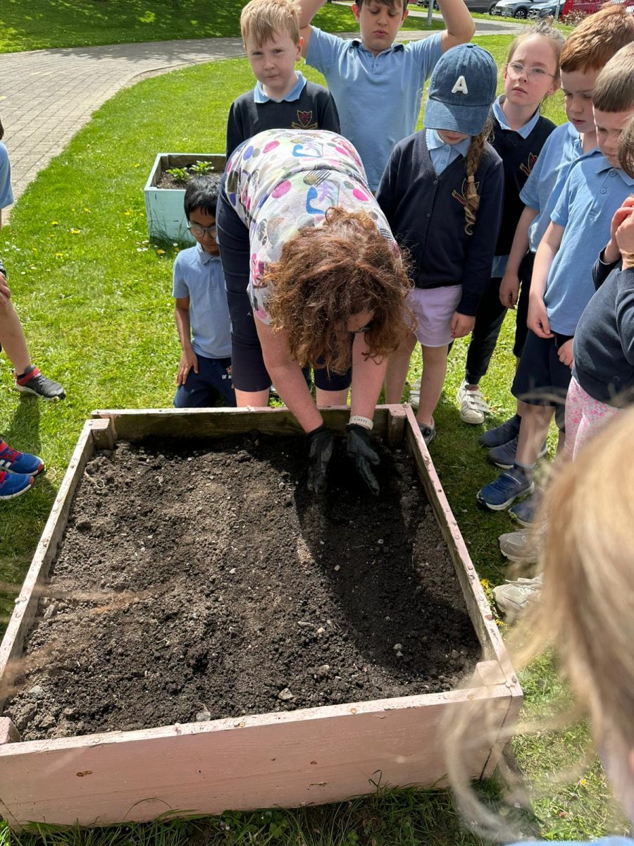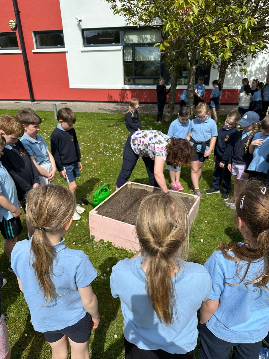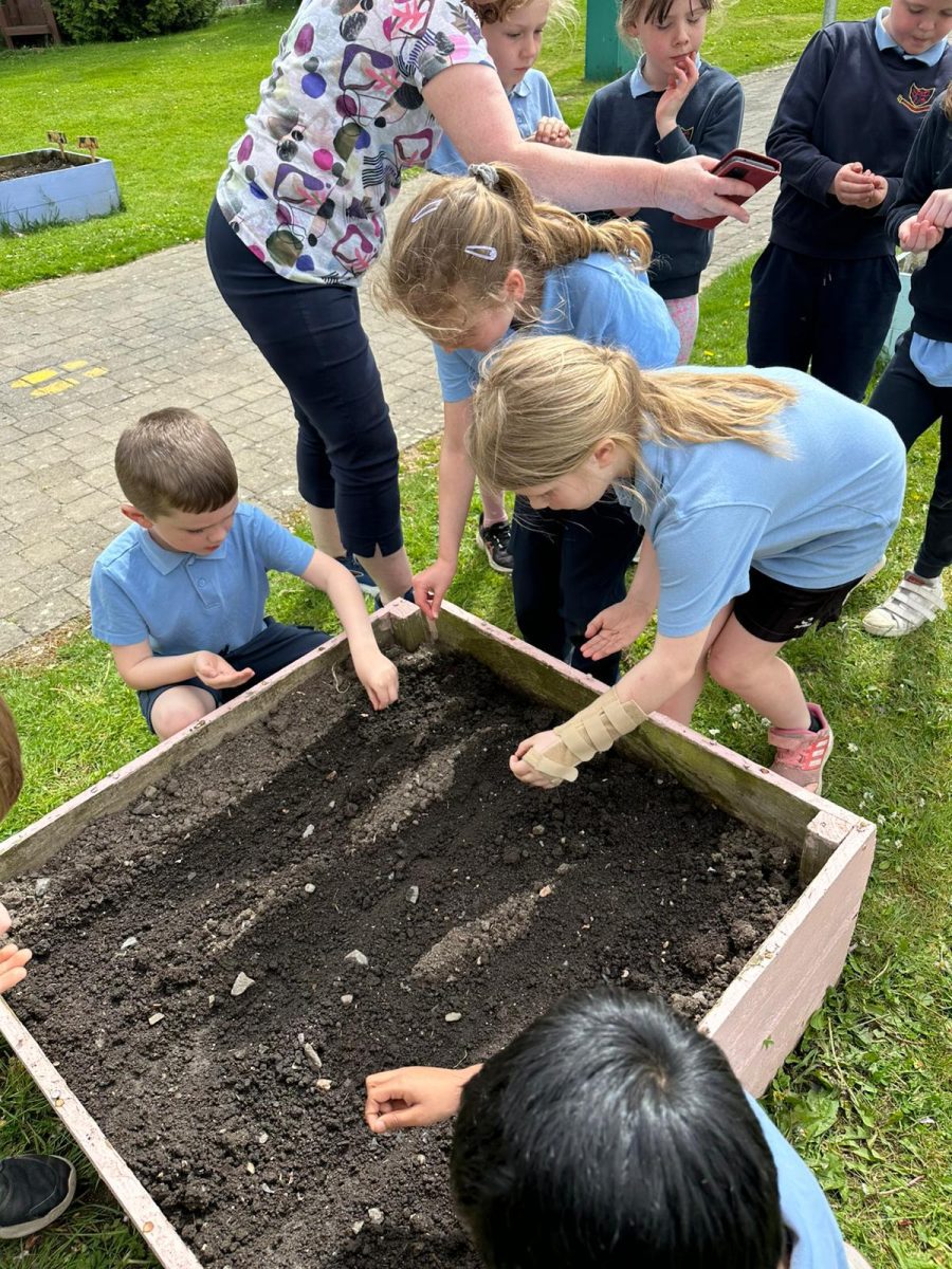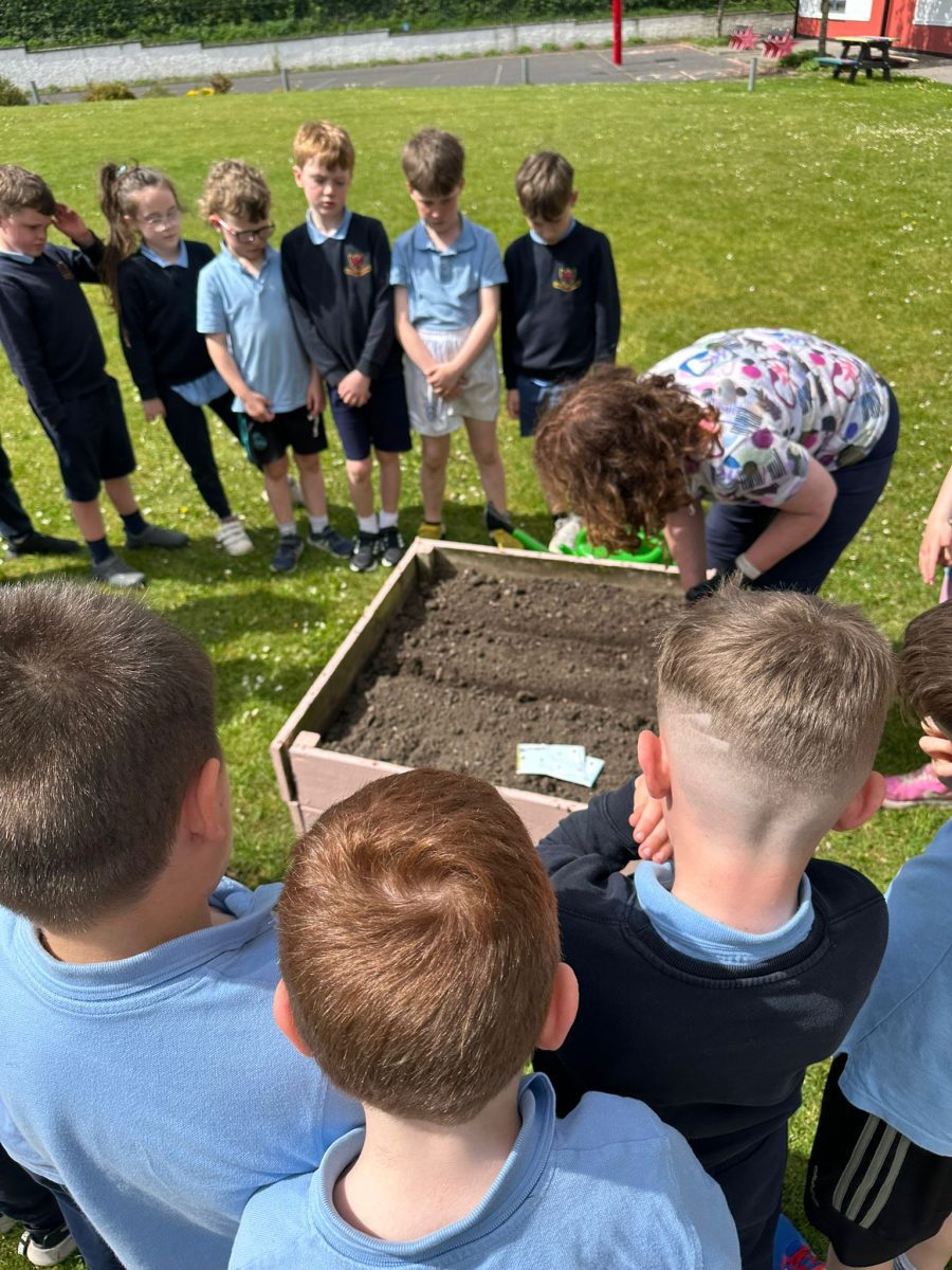 We are so lucky to have Mrs Lynch’s knowledge of growing vegetables. Here is helped 1st class learn how to plant and grow Radish.