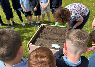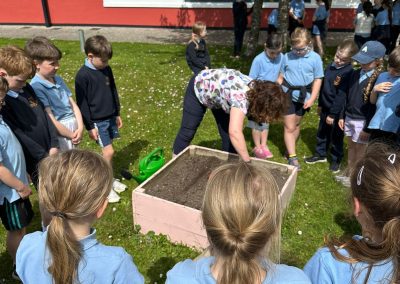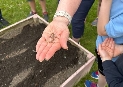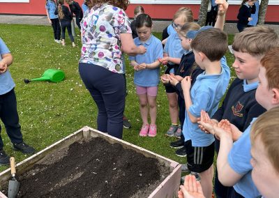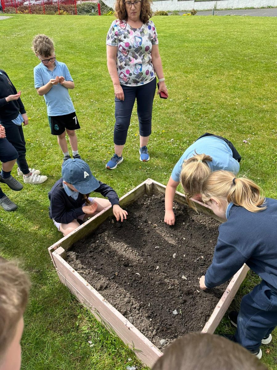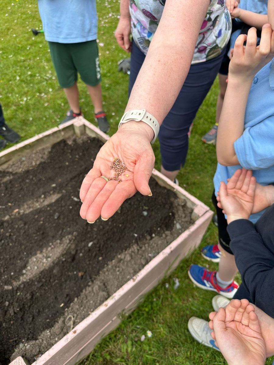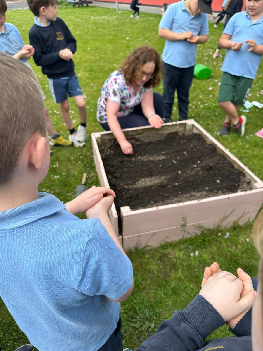 We are so lucky to have Mrs Lynch’s knowledge of growing vegetables. Here is helped 1st class learn how to plant and grow Radish.