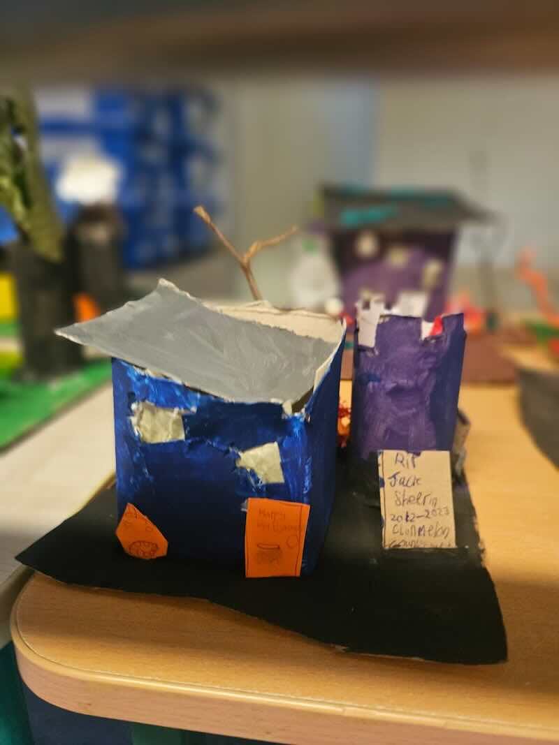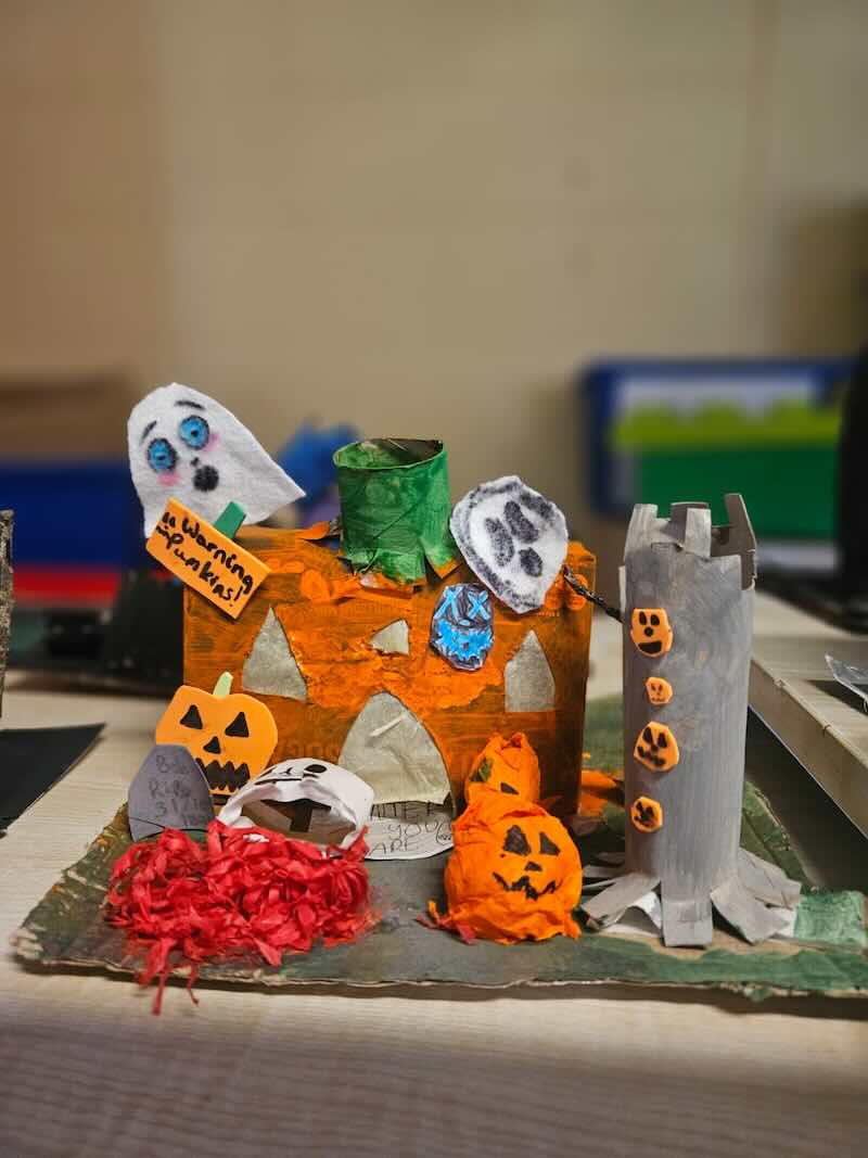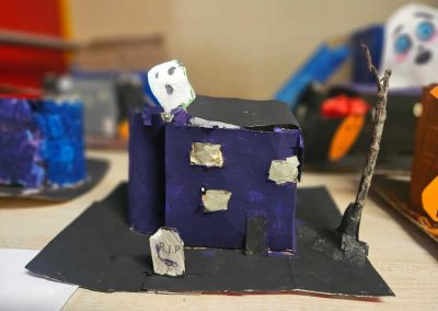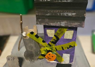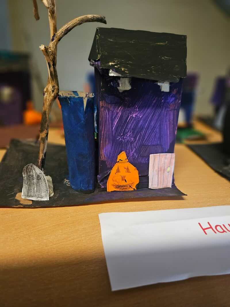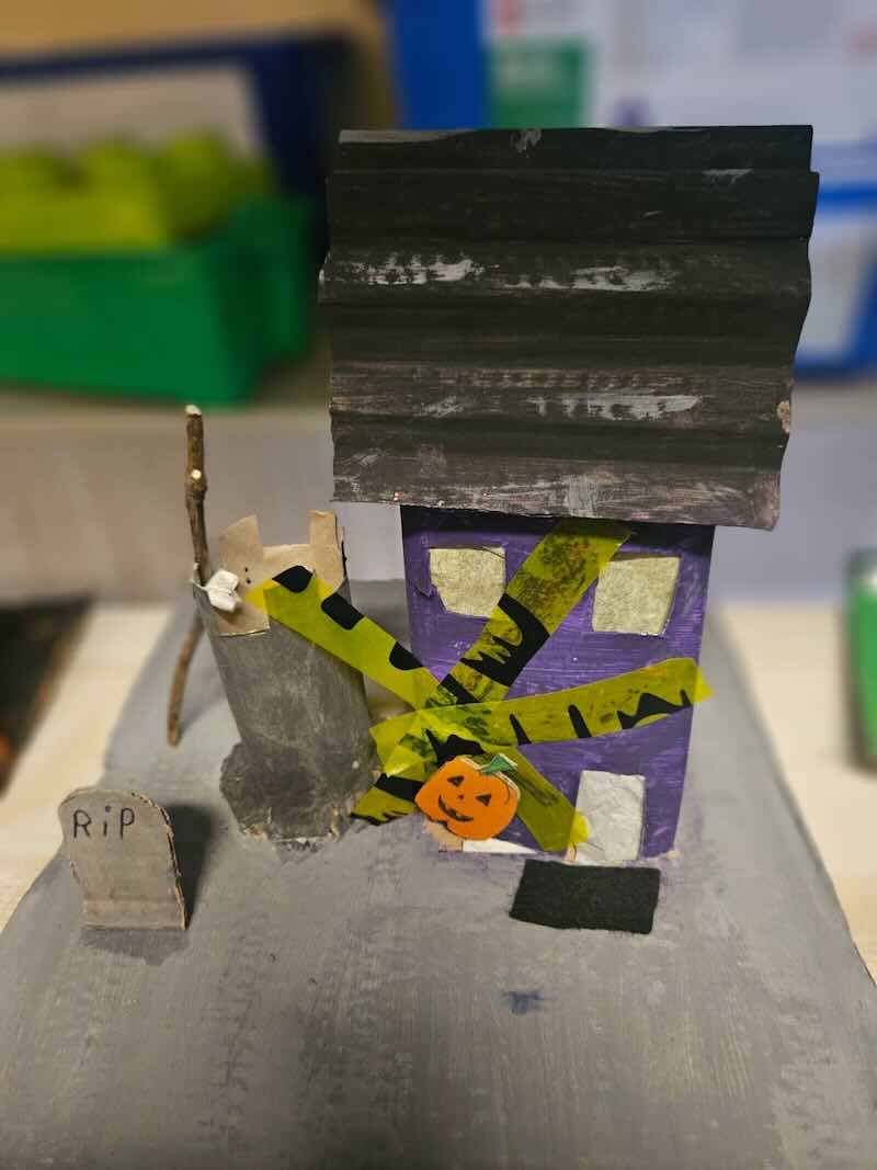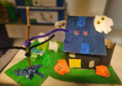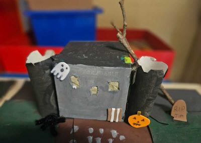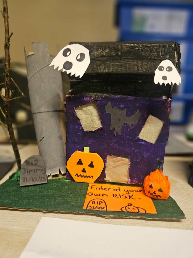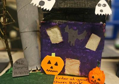 Some amazing works of art created by 5th class. They created spooky houses and as you can see from the photos how much work they put into them.