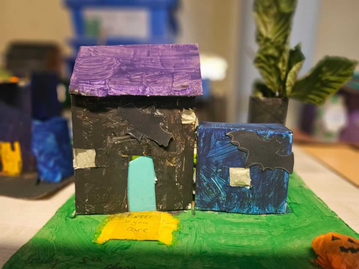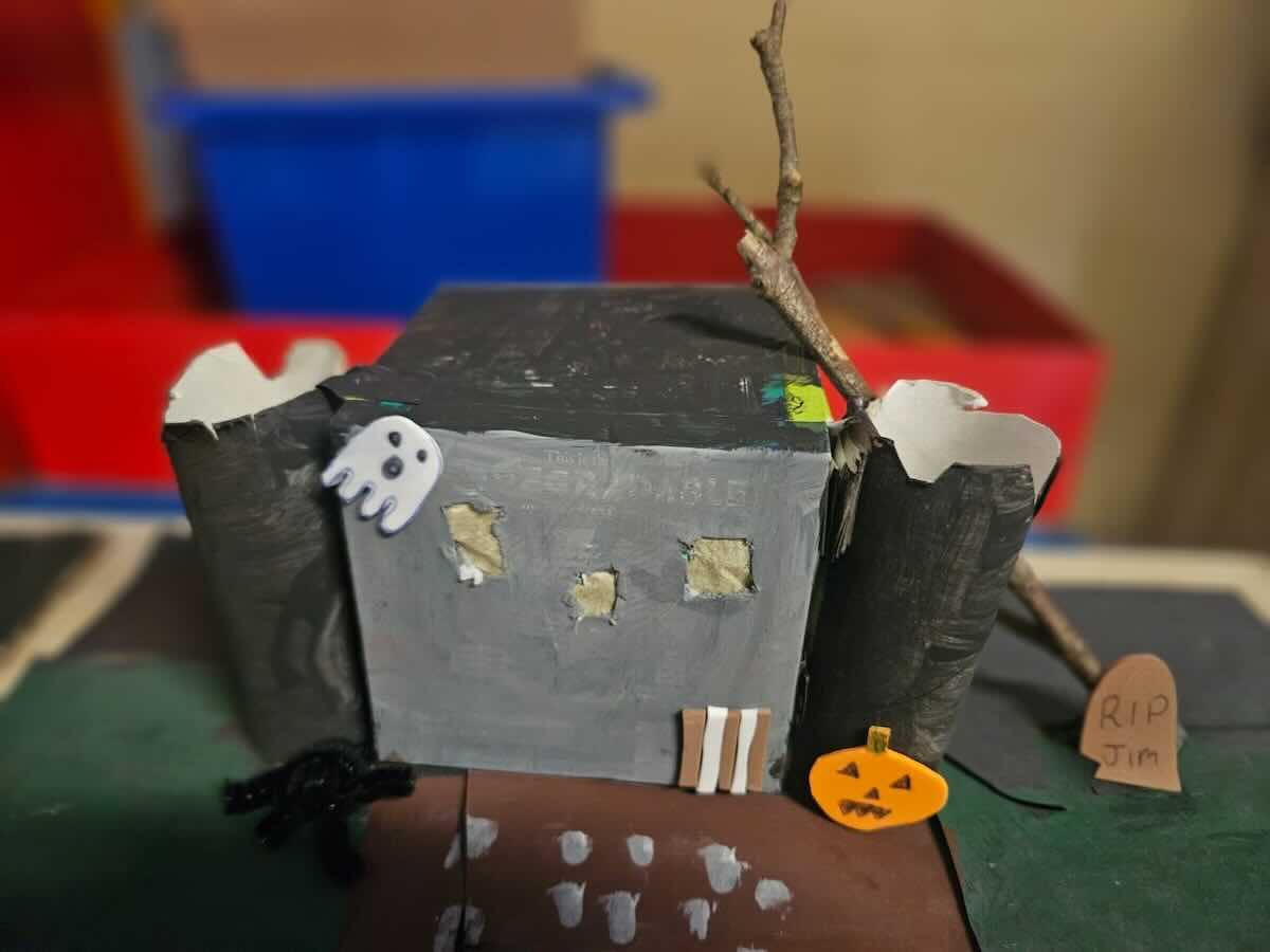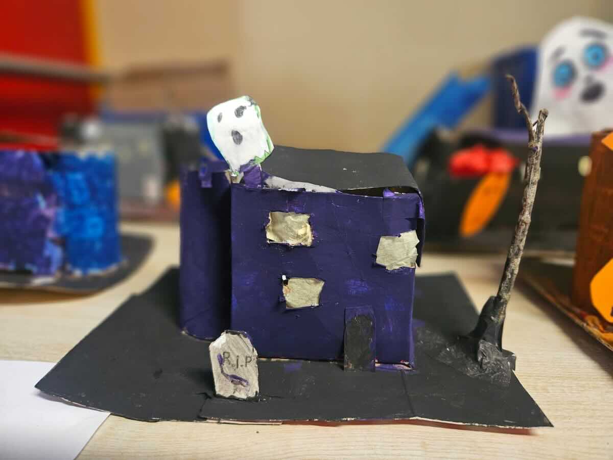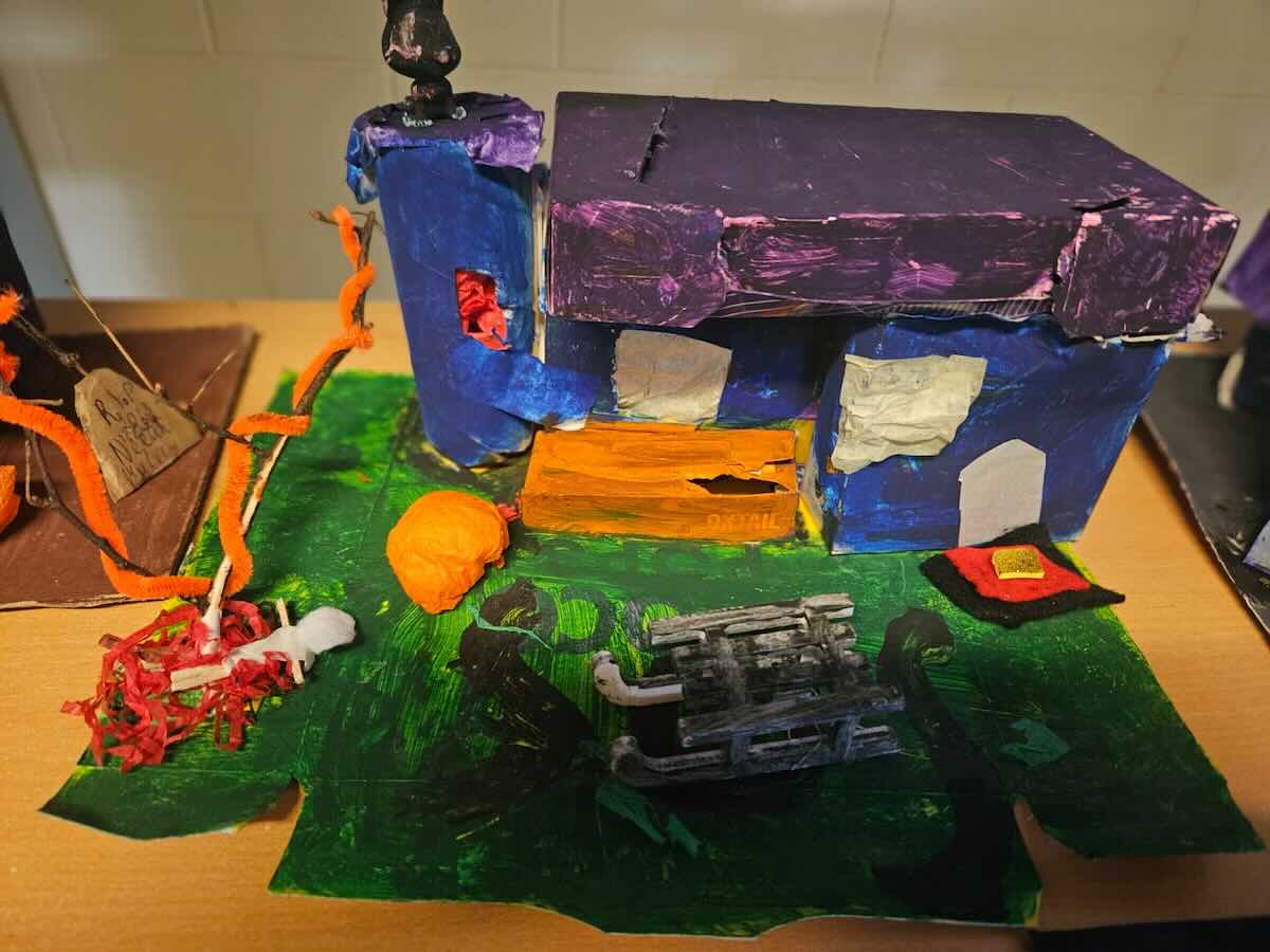 Some amazing works of art created by 5th class. They created spooky houses and as you can see from the photos how much work they put into them.
