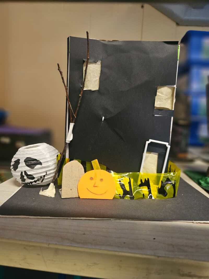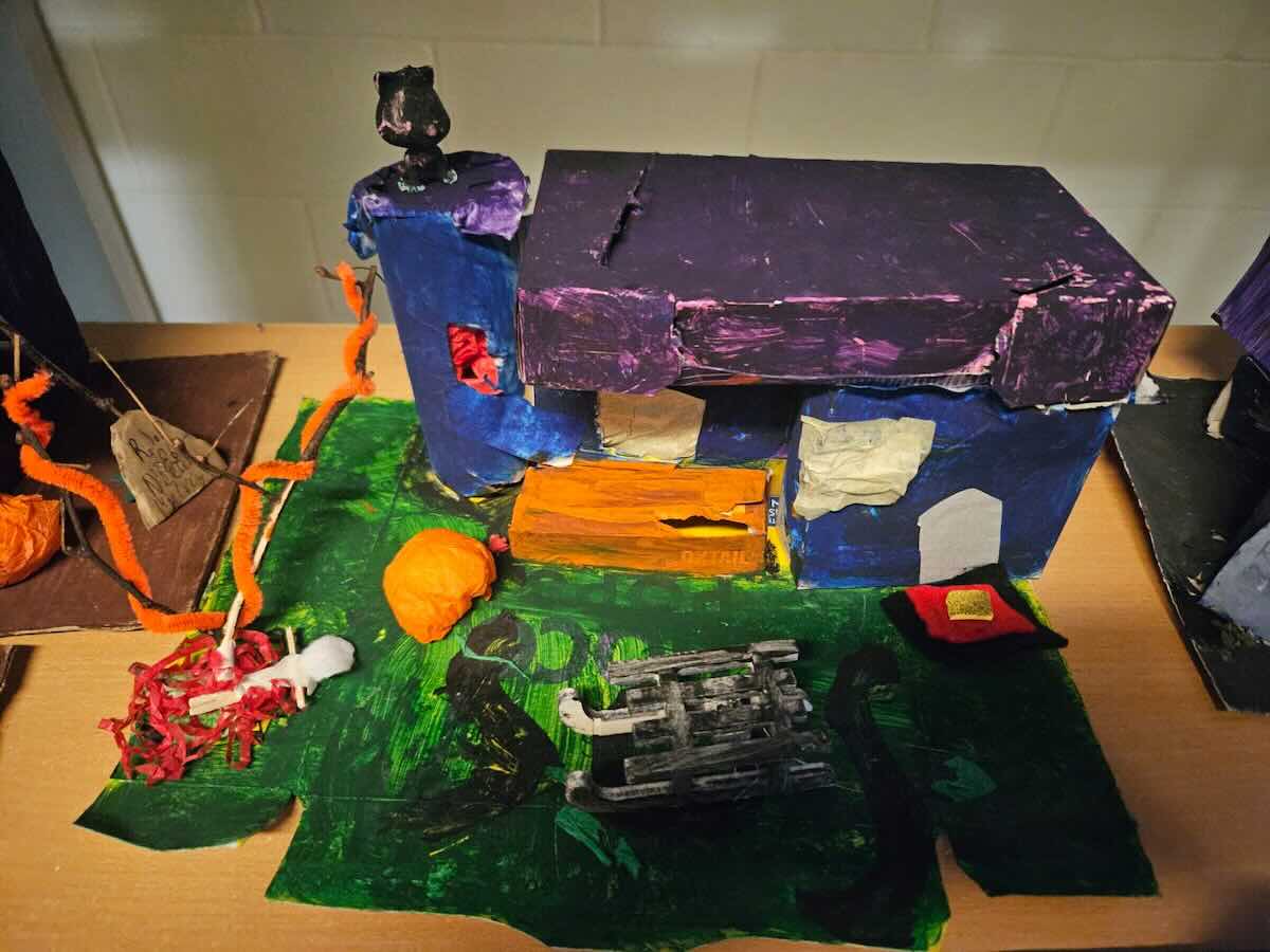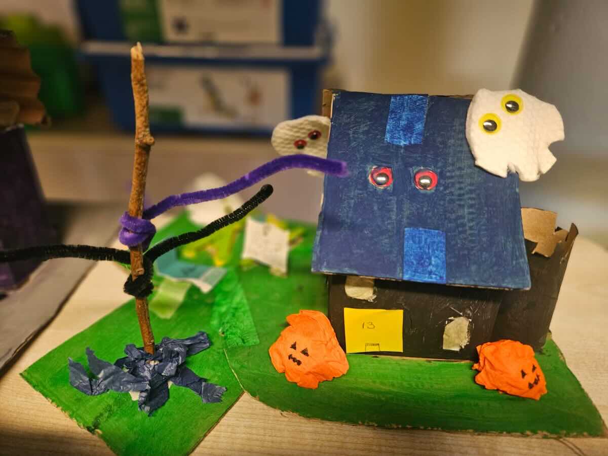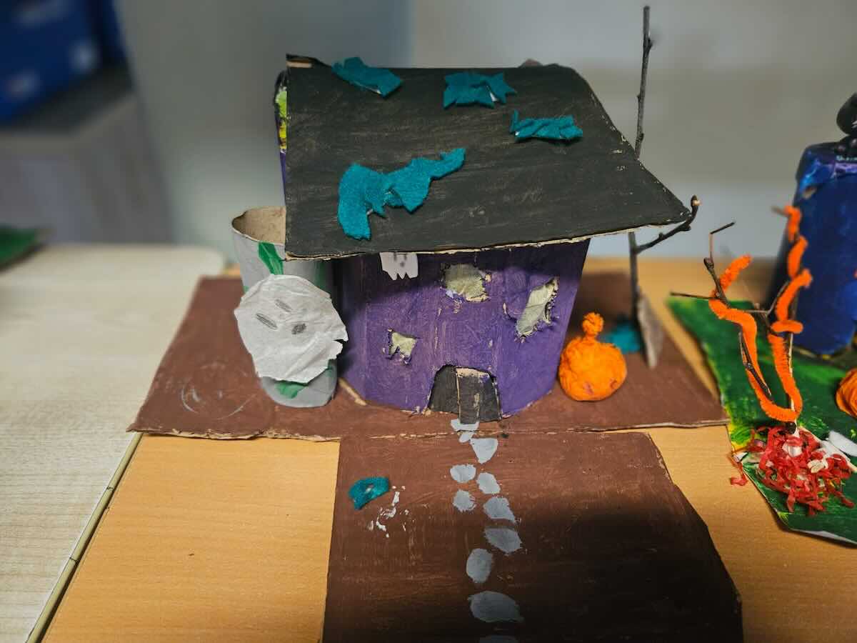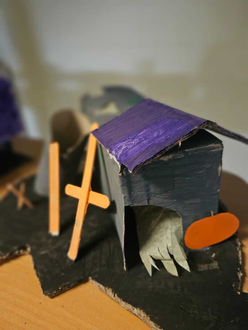 Some amazing works of art created by 5th class. They created spooky houses and as you can see from the photos how much work they put into them.