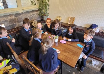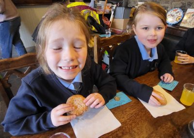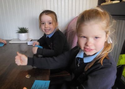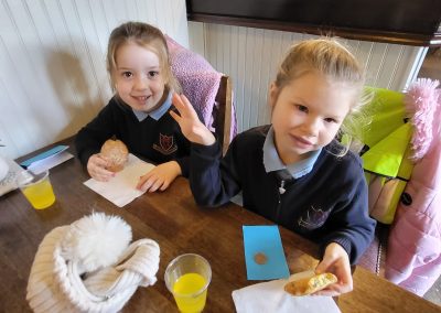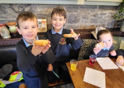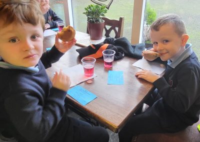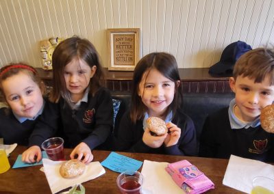 Many thanks to Marion from who kindly welcomed the children from Senior Infants. The children enjoyed a drink and cookie as part of this months Aistear theme of “The Cafe”.