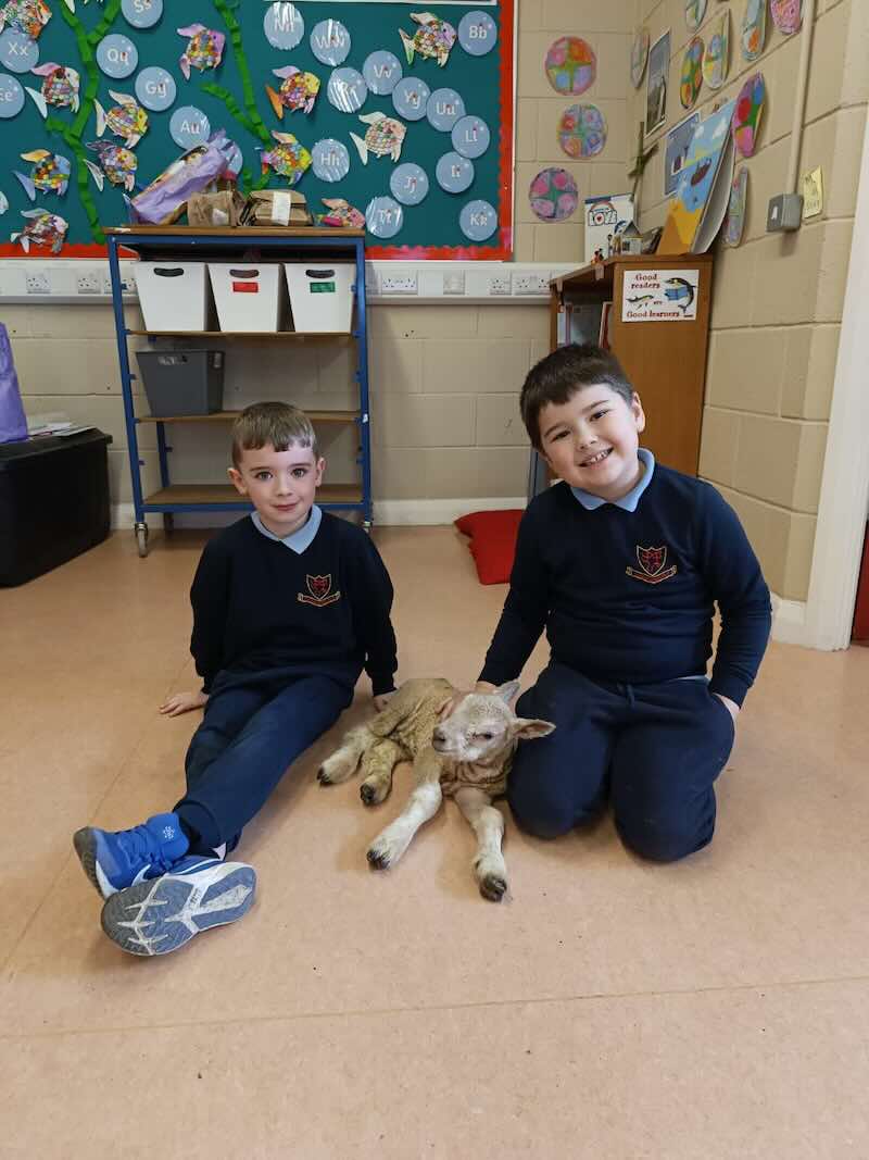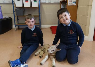 A very welcome guest to senior infants. A kind farmer brought in a day old lamb to see the children in Senior infants, he also did the same last year and kindly brought in a photo of last years lamb which was named by the children (last year) as Tiffany. It was lovely for the children to see how big Tiffany has gotten and how happy she was. The children all made name suggestions for this years lamb which will be put into a box and choosen during the week….so stay tuned for the lambs name!