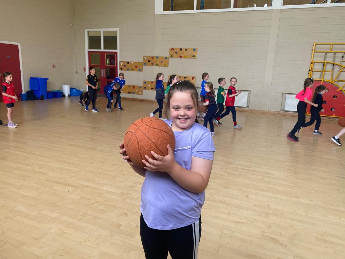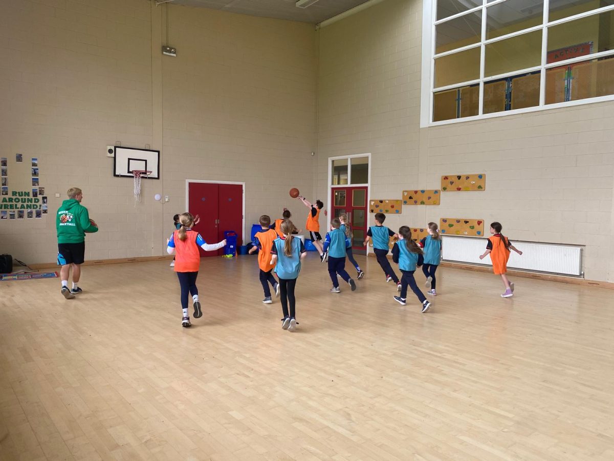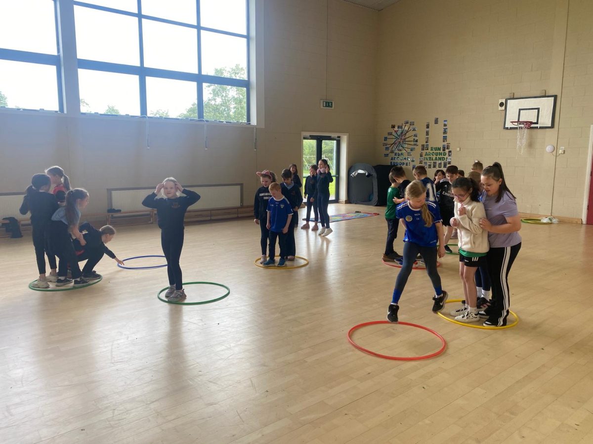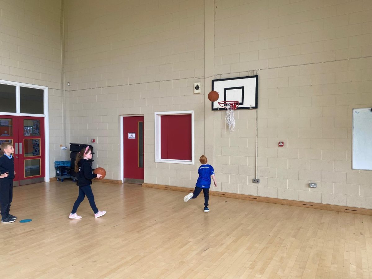 Some photos of 2nd class during Active week including basketball from coach Alex. Daily active challenge of crossing the sports hall using hula hoops.