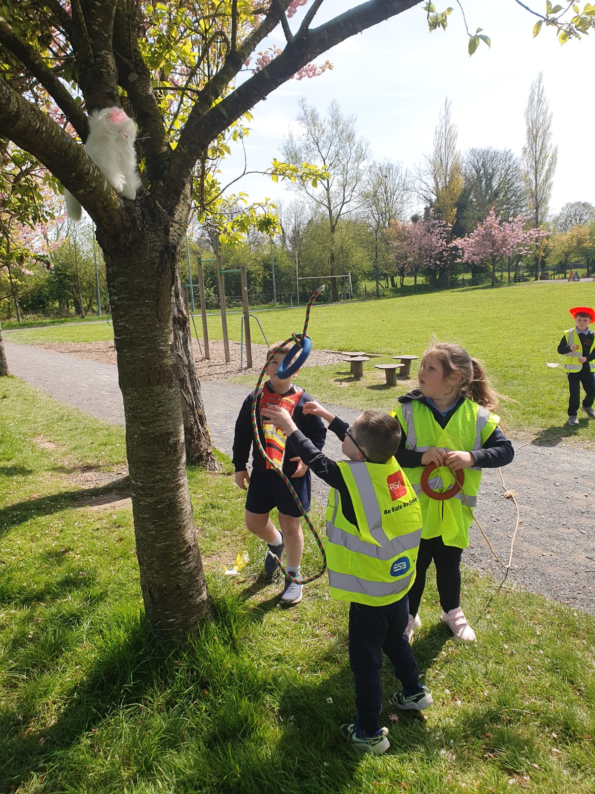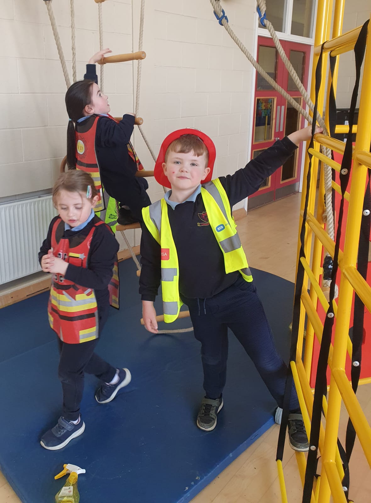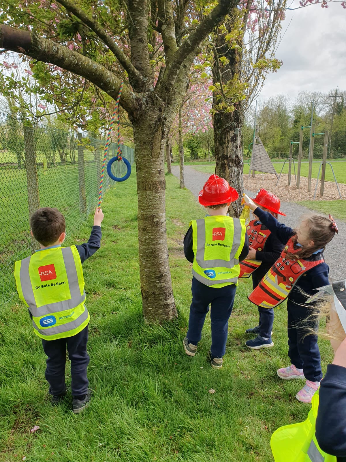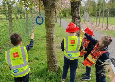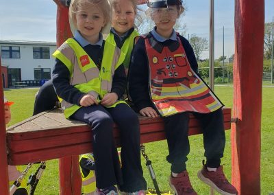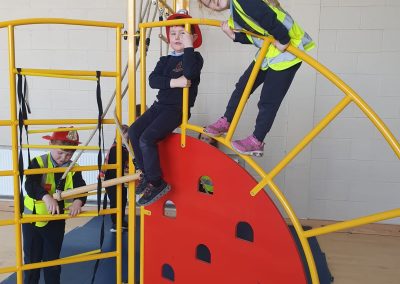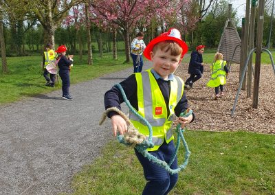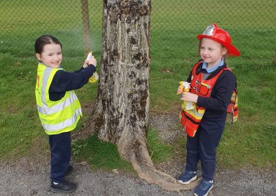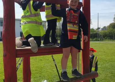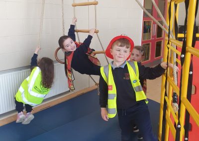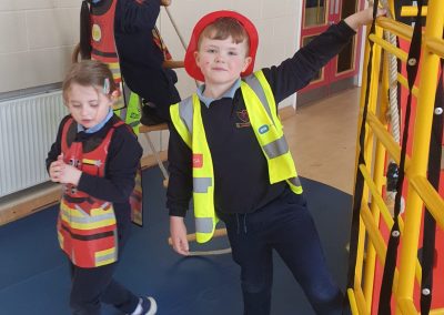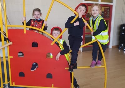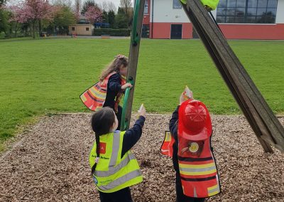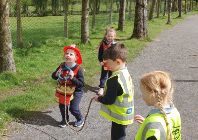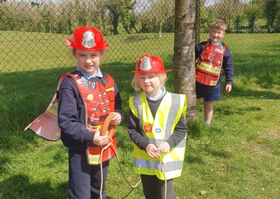 Aistear – fire station. We had such fun this week. Some highlights were Saving kittens from burning trees and jumping down the fire poles. Children were learning how to how to tie knots, measure ladders and create a winch in role play. They used cubes to measure the length of the hoses they made out of straws and had fun learning about capacity at the water station.