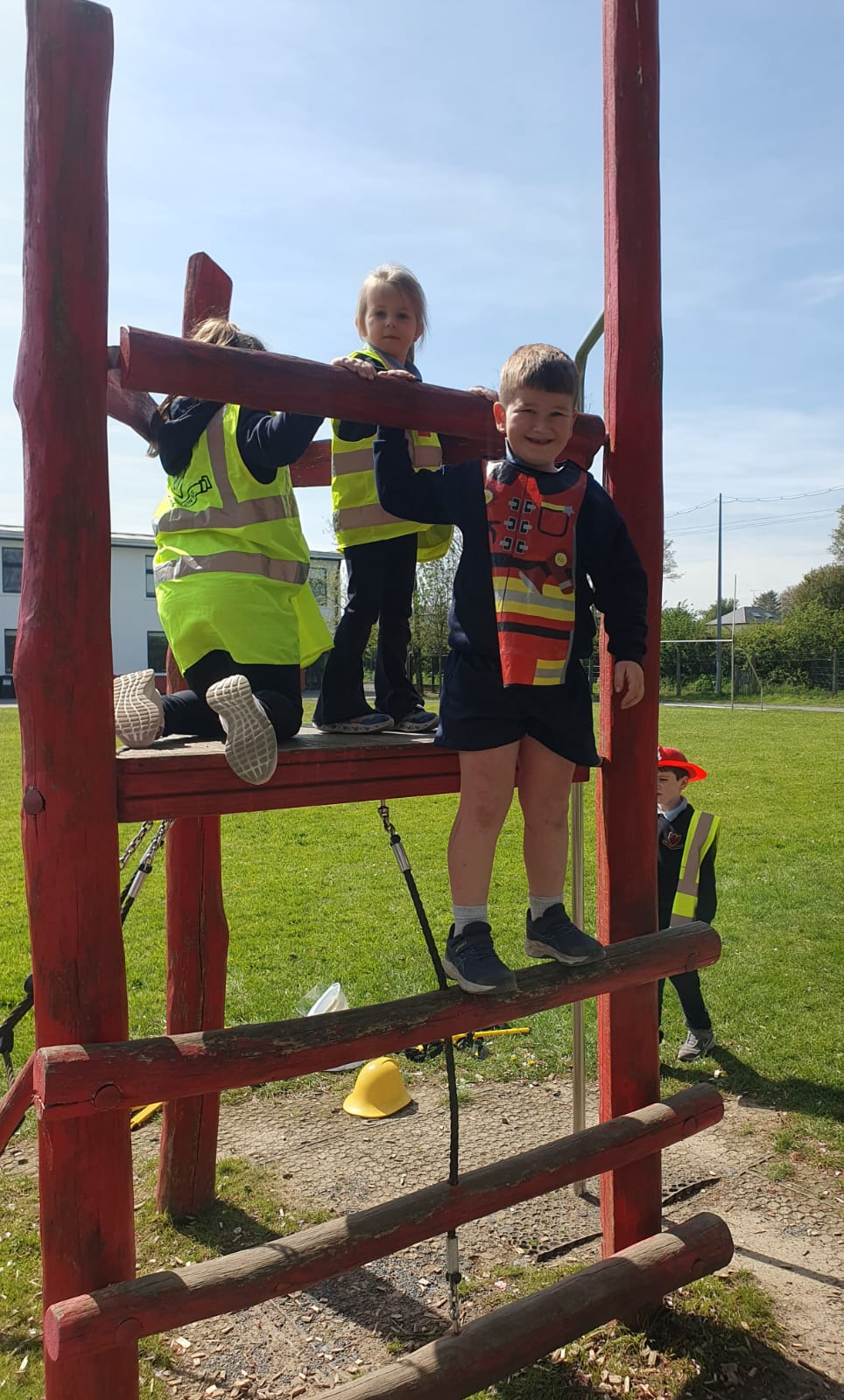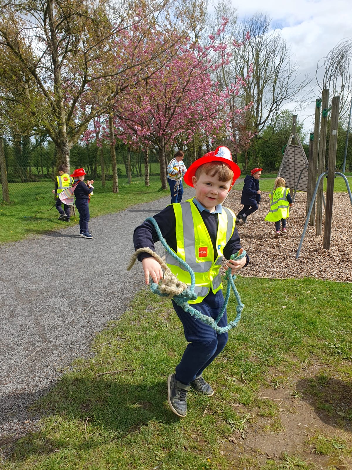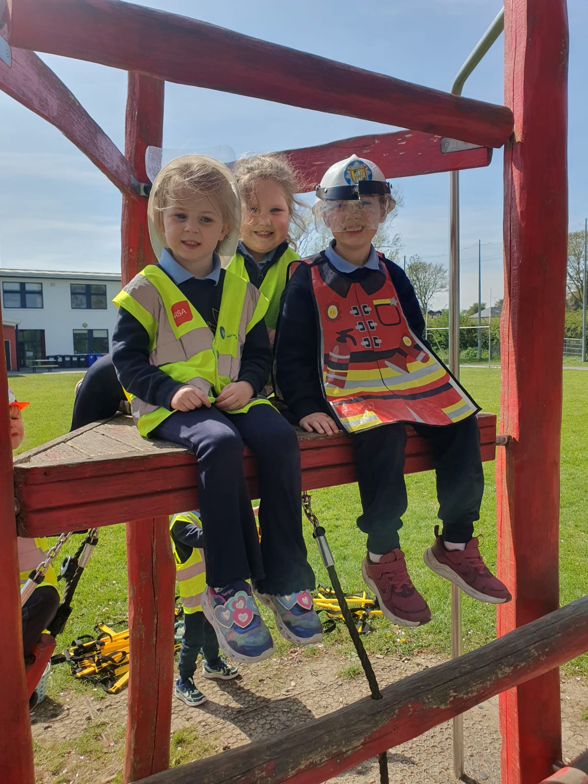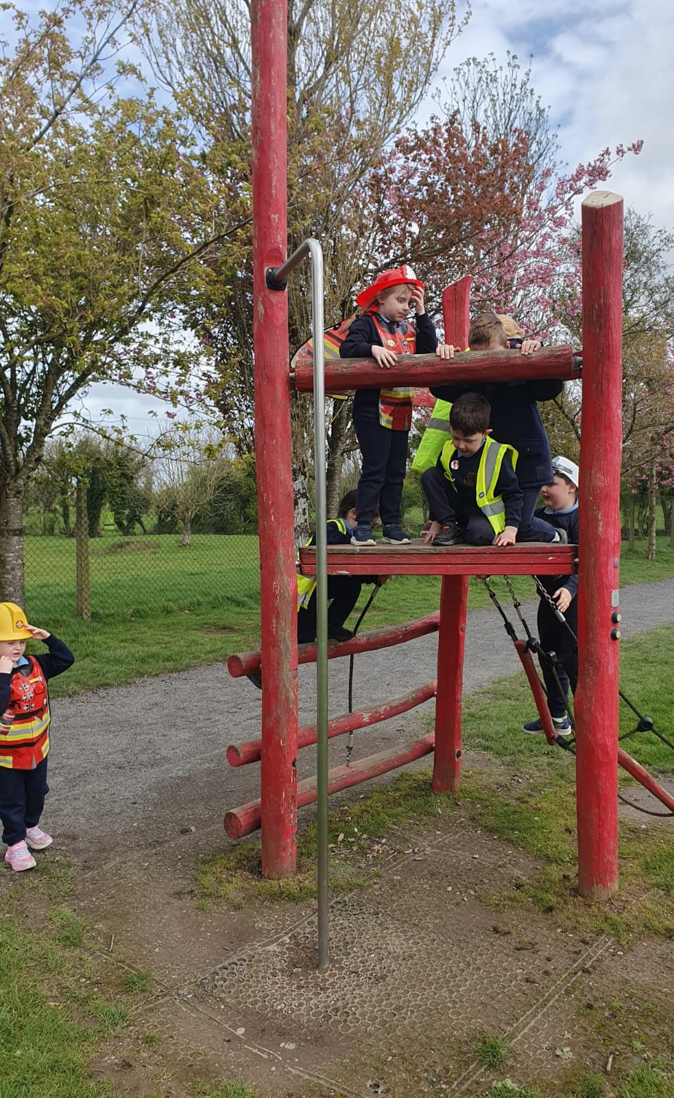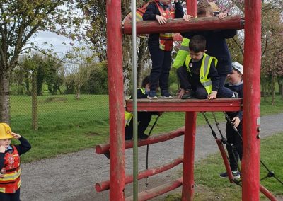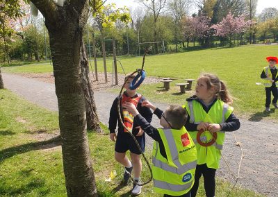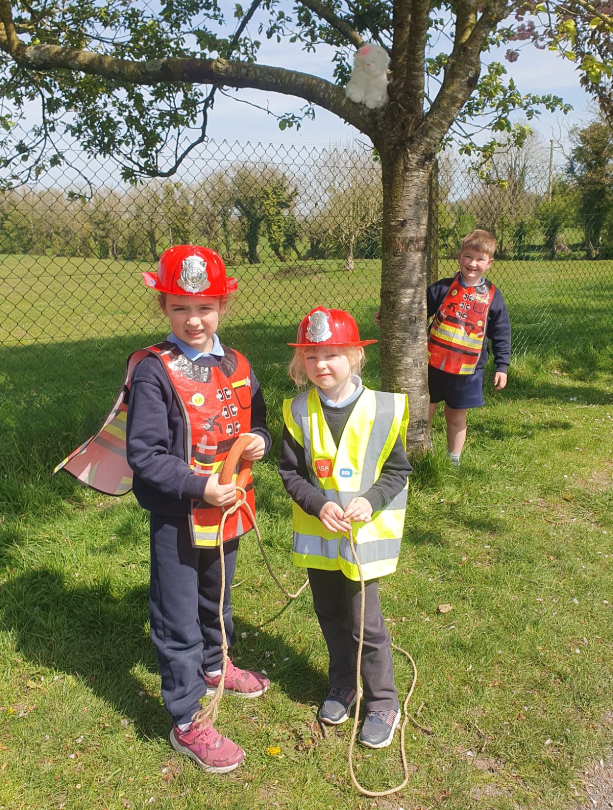 Aistear – fire station. We had such fun this week. Some highlights were Saving kittens from burning trees and jumping down the fire poles. Children were learning how to how to tie knots, measure ladders and create a winch in role play. They used cubes to measure the length of the hoses they made out of straws and had fun learning about capacity at the water station.