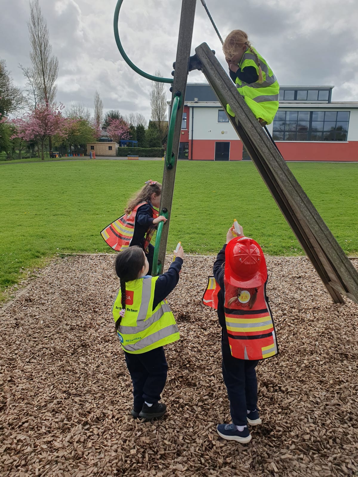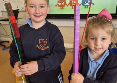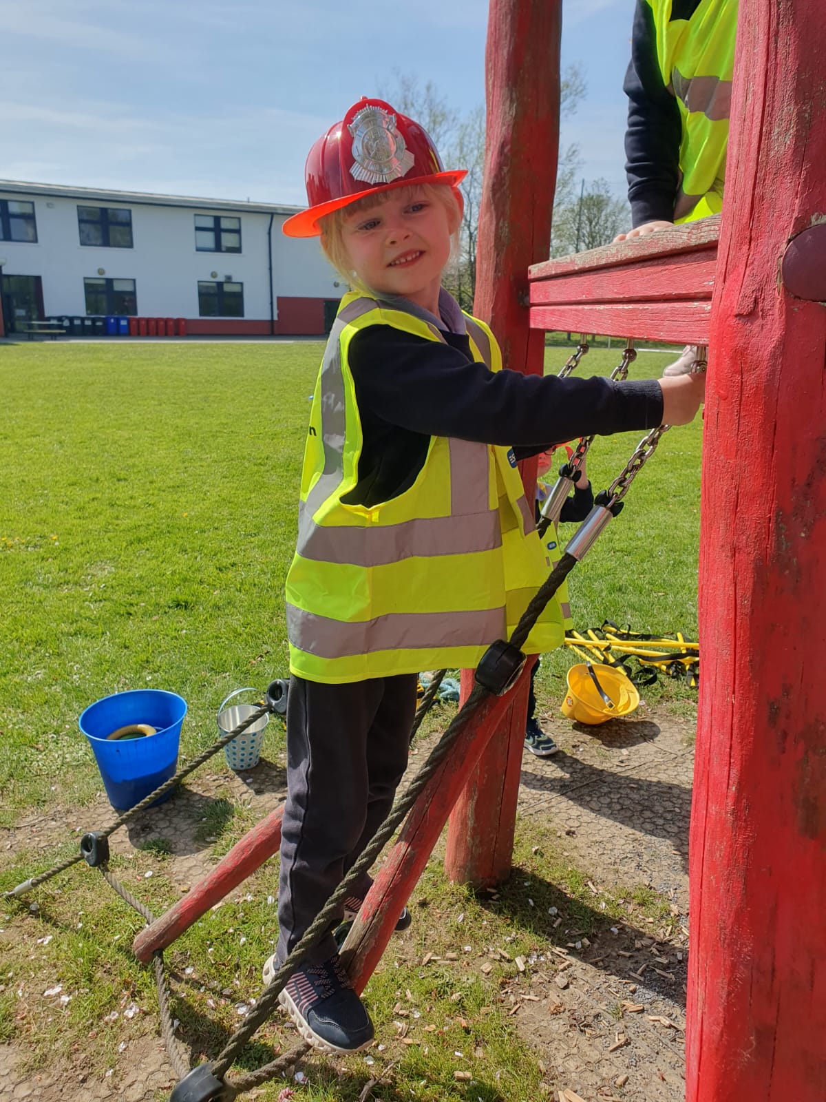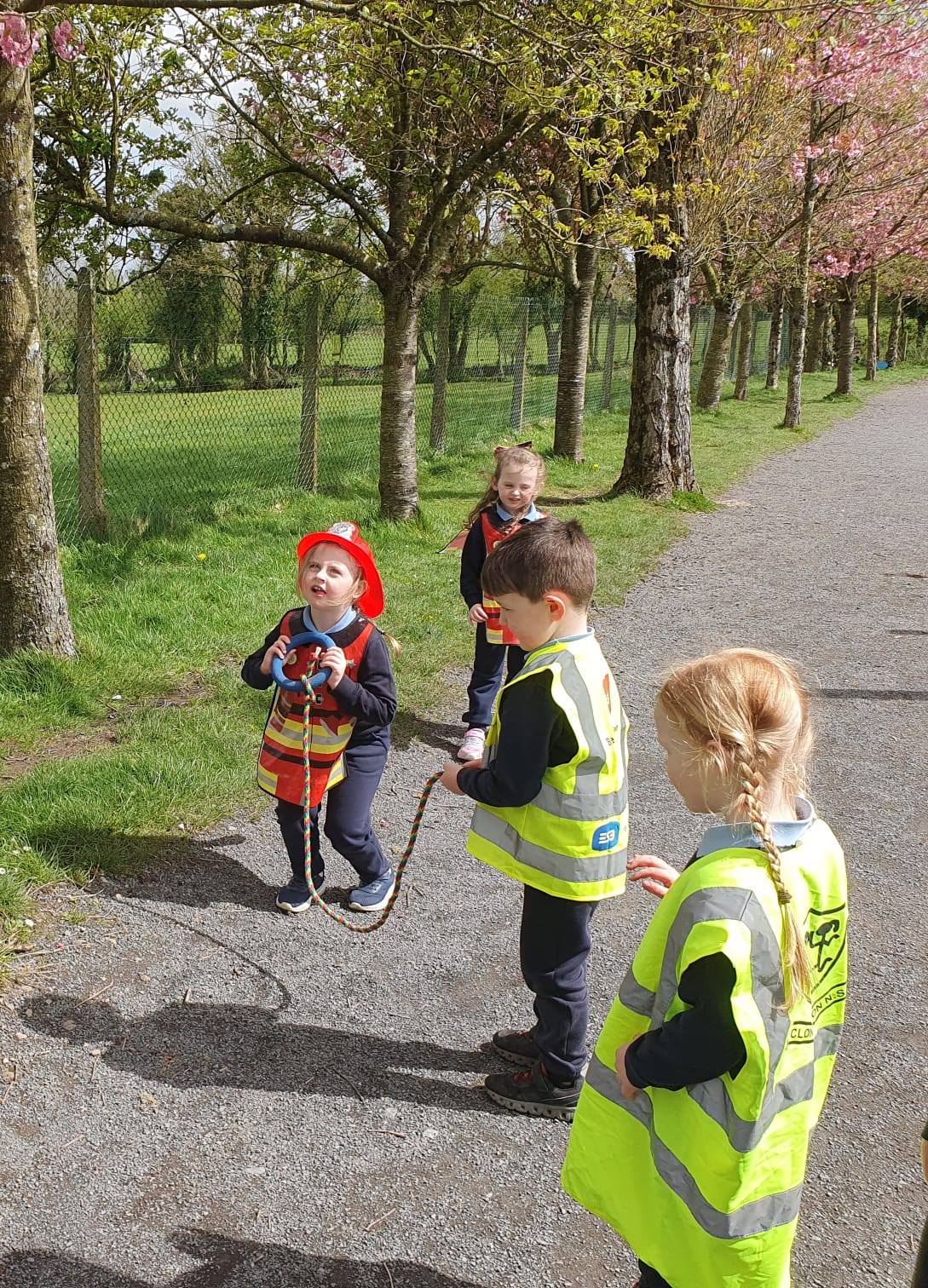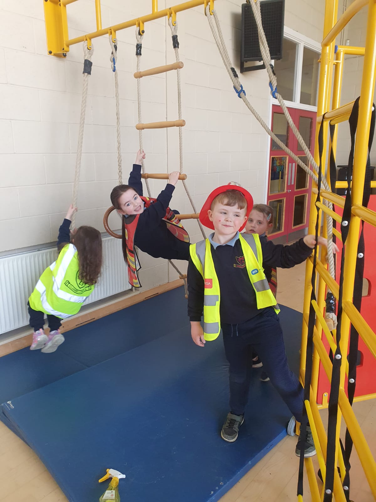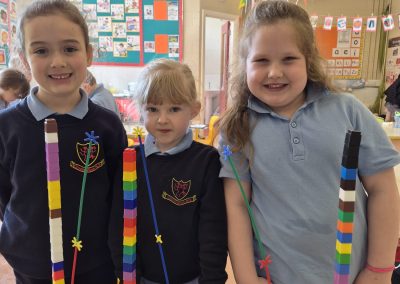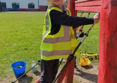 Aistear – fire station. We had such fun this week. Some highlights were Saving kittens from burning trees and jumping down the fire poles. Children were learning how to how to tie knots, measure ladders and create a winch in role play. They used cubes to measure the length of the hoses they made out of straws and had fun learning about capacity at the water station.