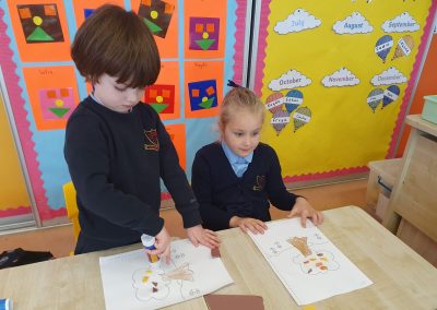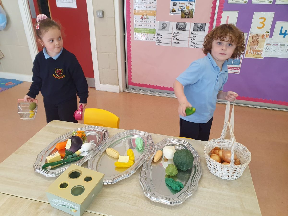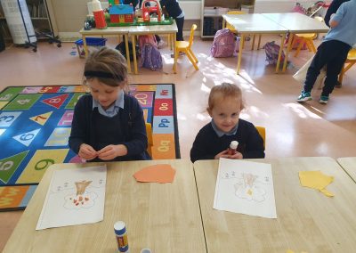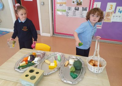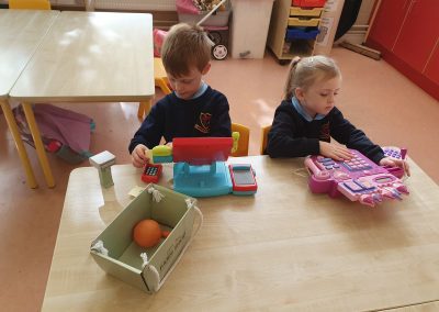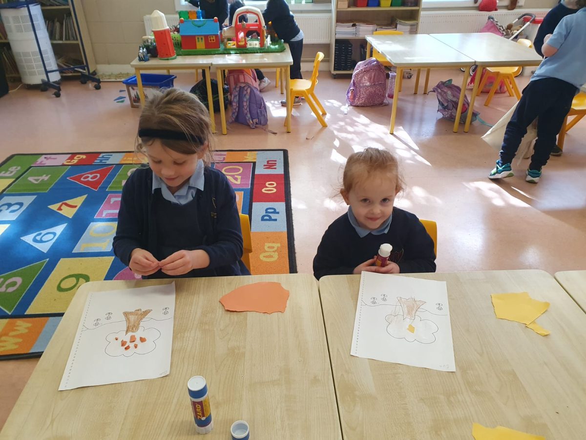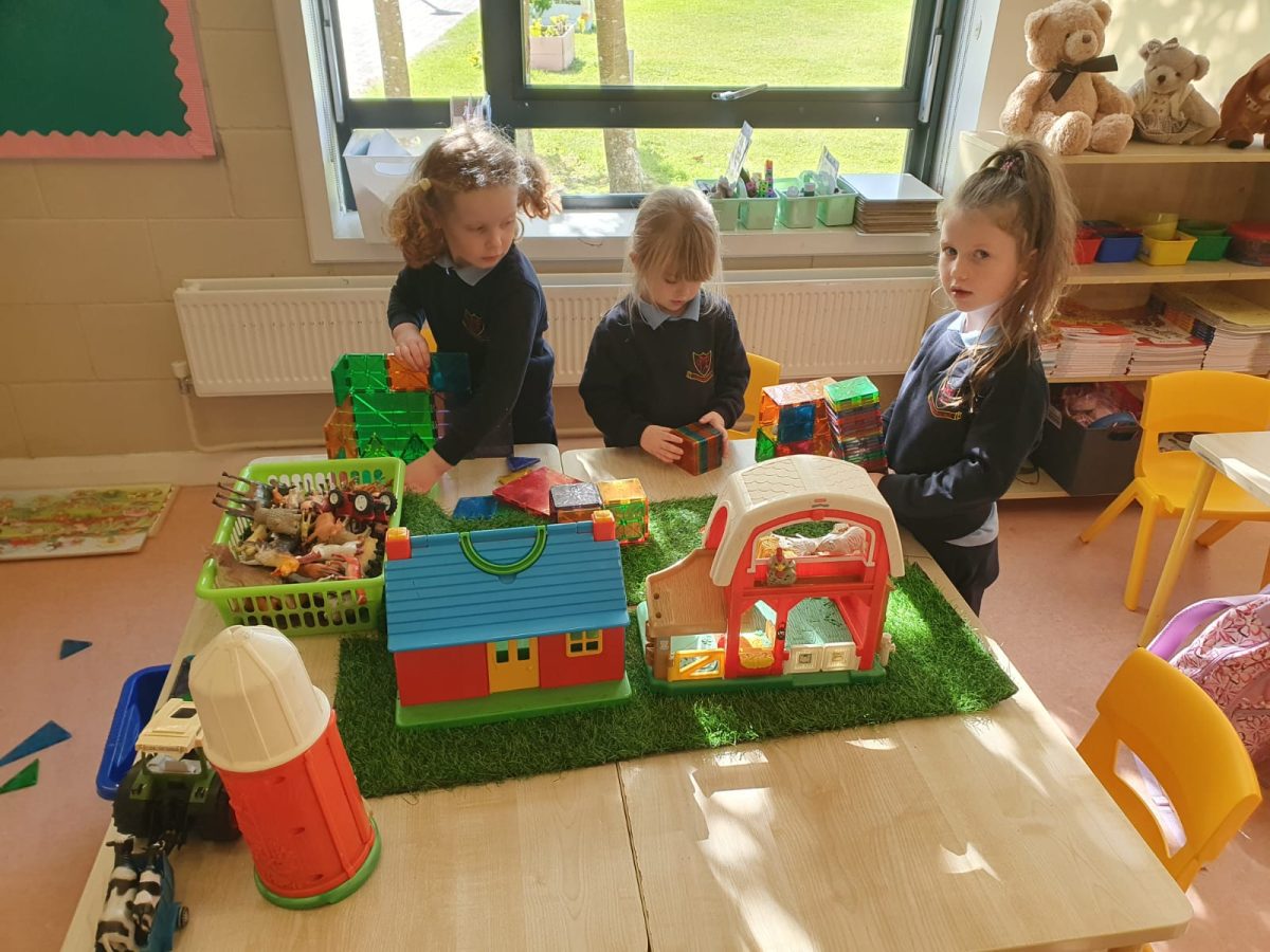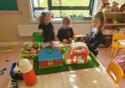 This month’s Aistear Theme is On the farm . The children enjoyed role play- the farm.shop, small world playing- the farm yard, fine motor group- decorating autumn trees.
