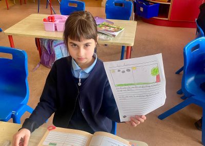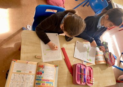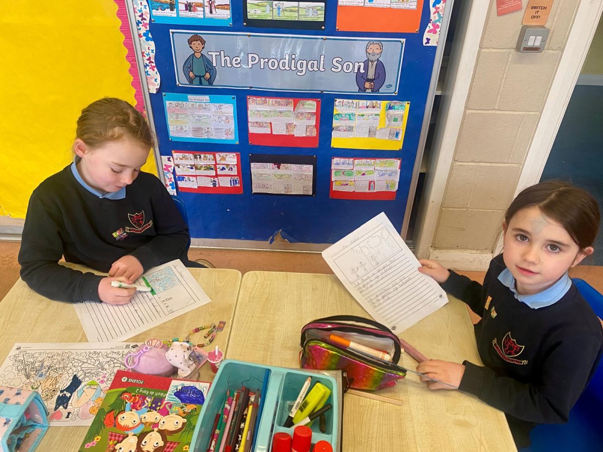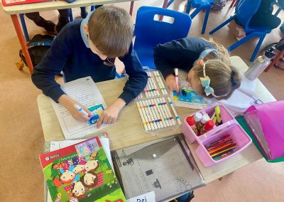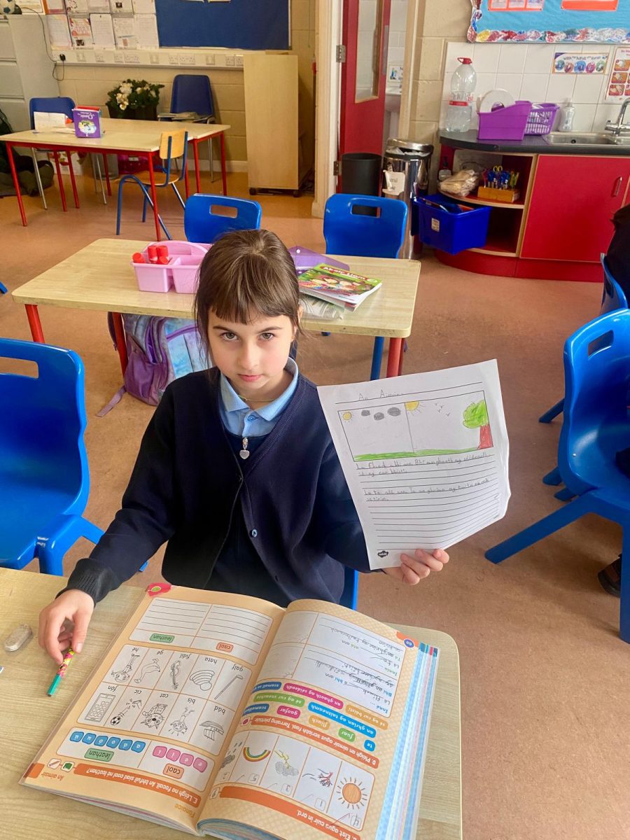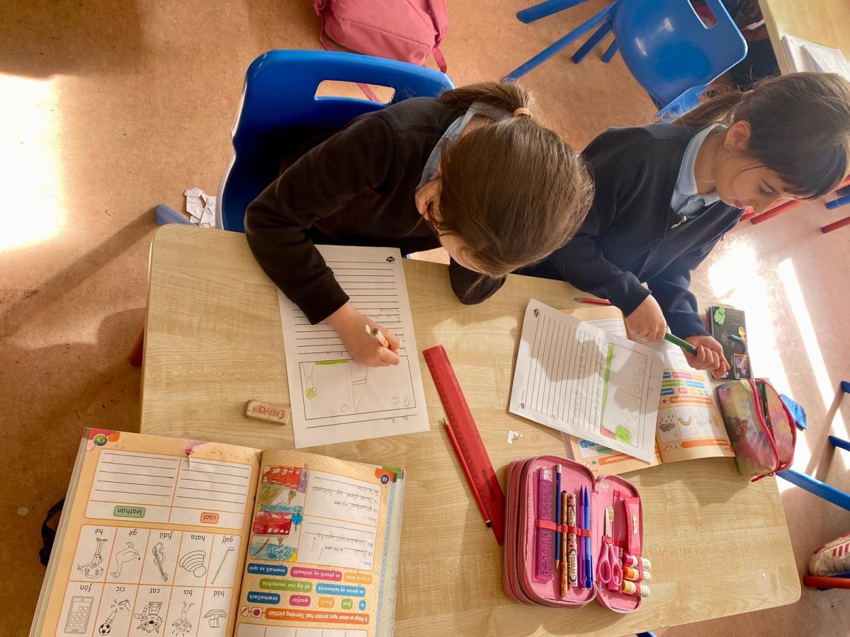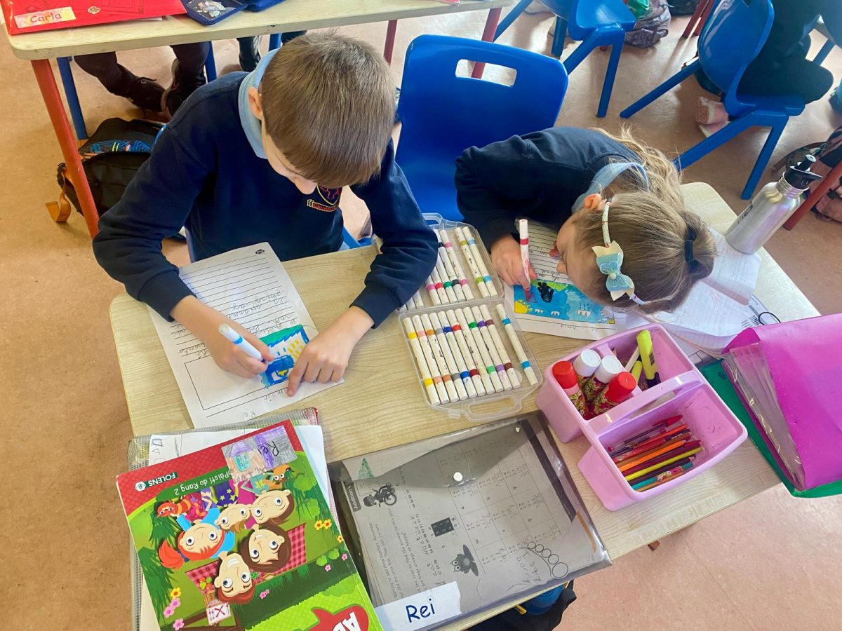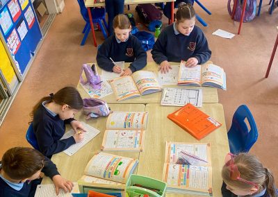 Second Class working on both oral and written work on the Irish topic of An Aimsir