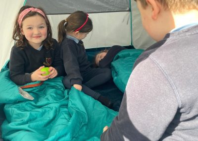 Senior Infants enjoyed their Aistear Theme of Camping. As you can see from the photos they had great practice.