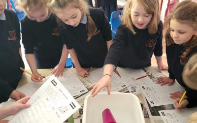 Science week in 1st Class. The children explored floating and sinking.