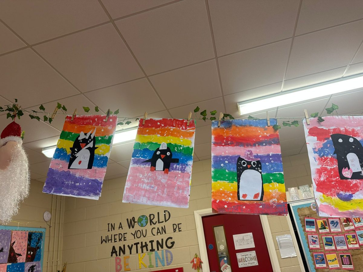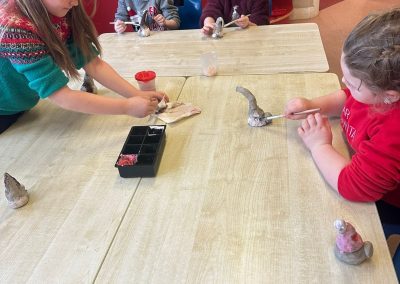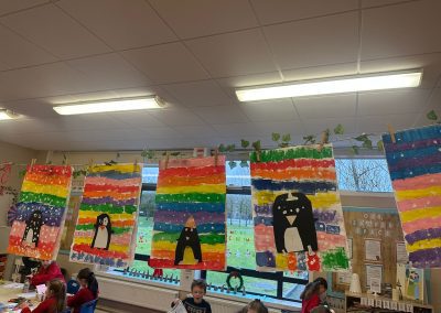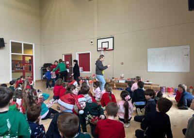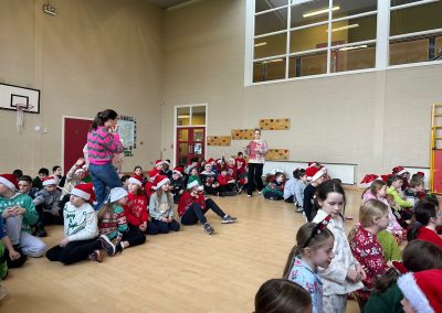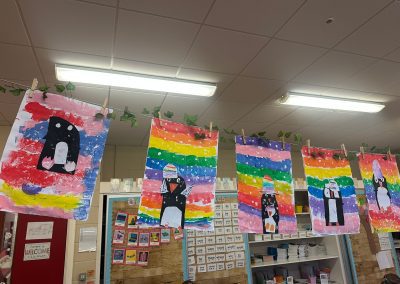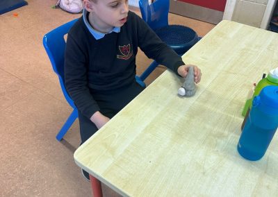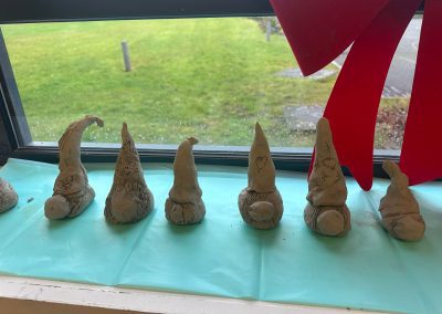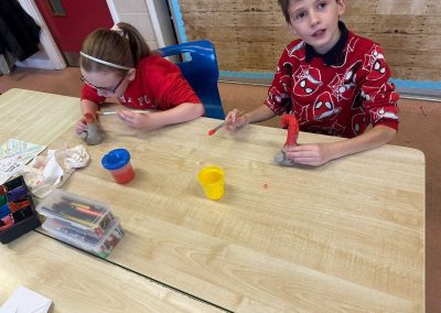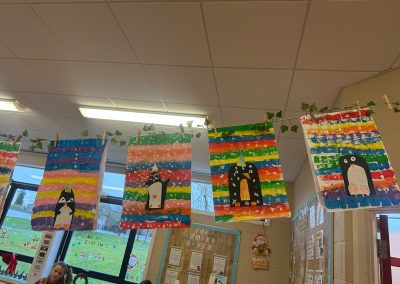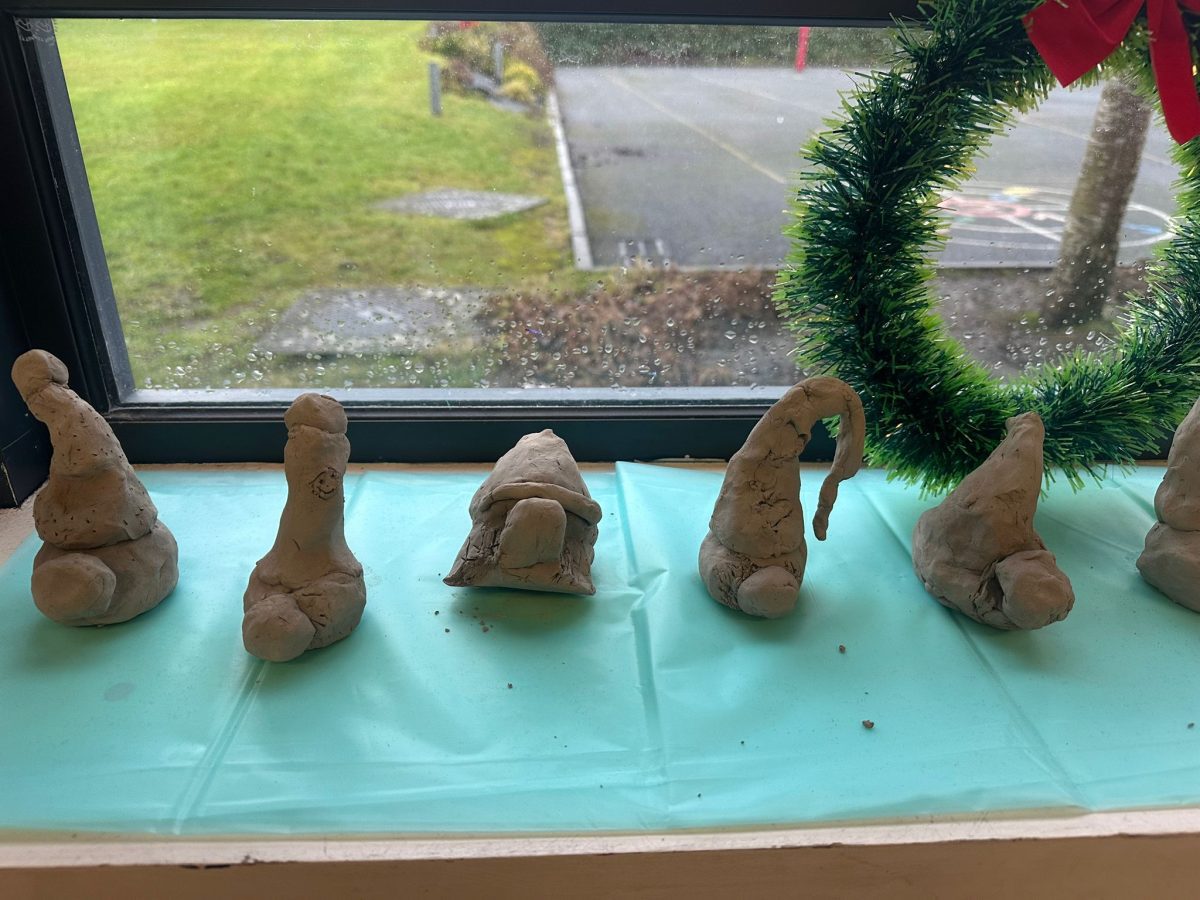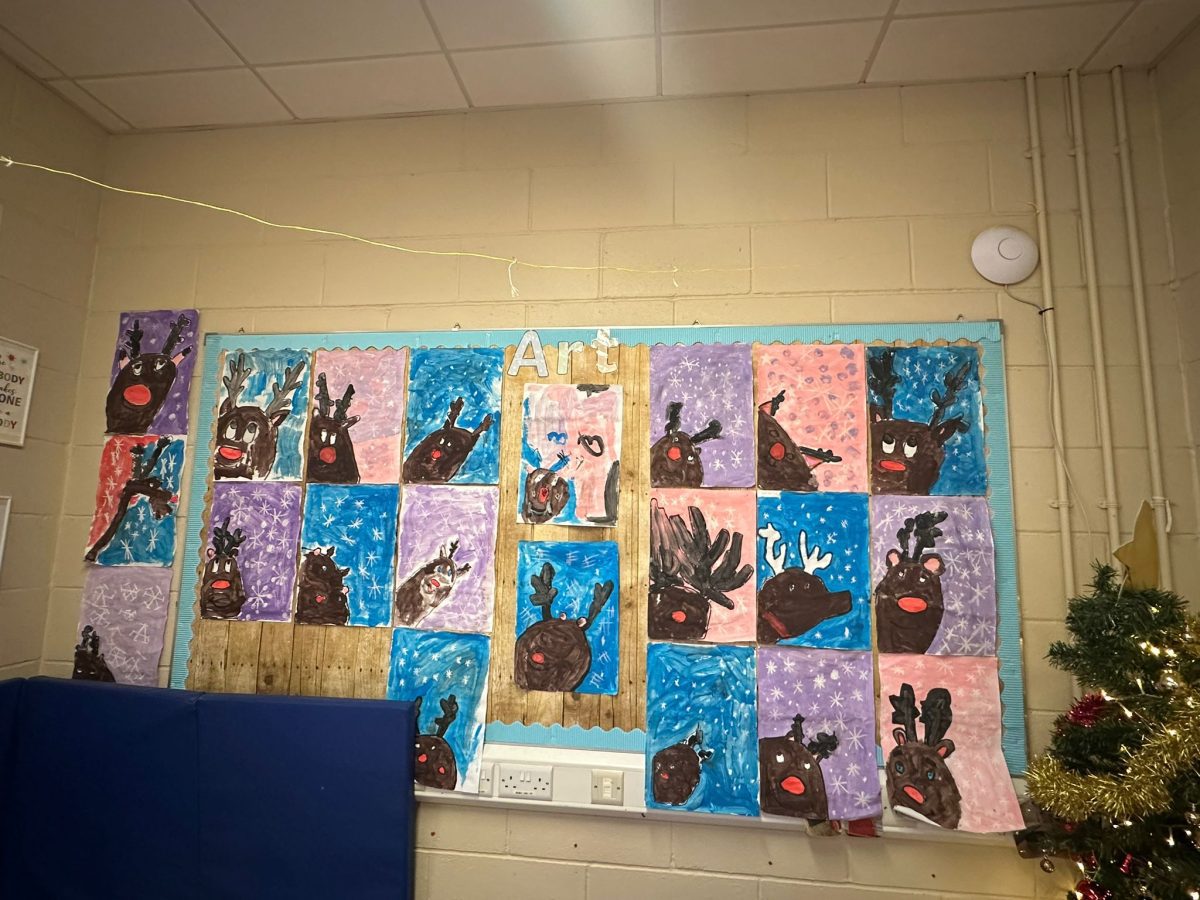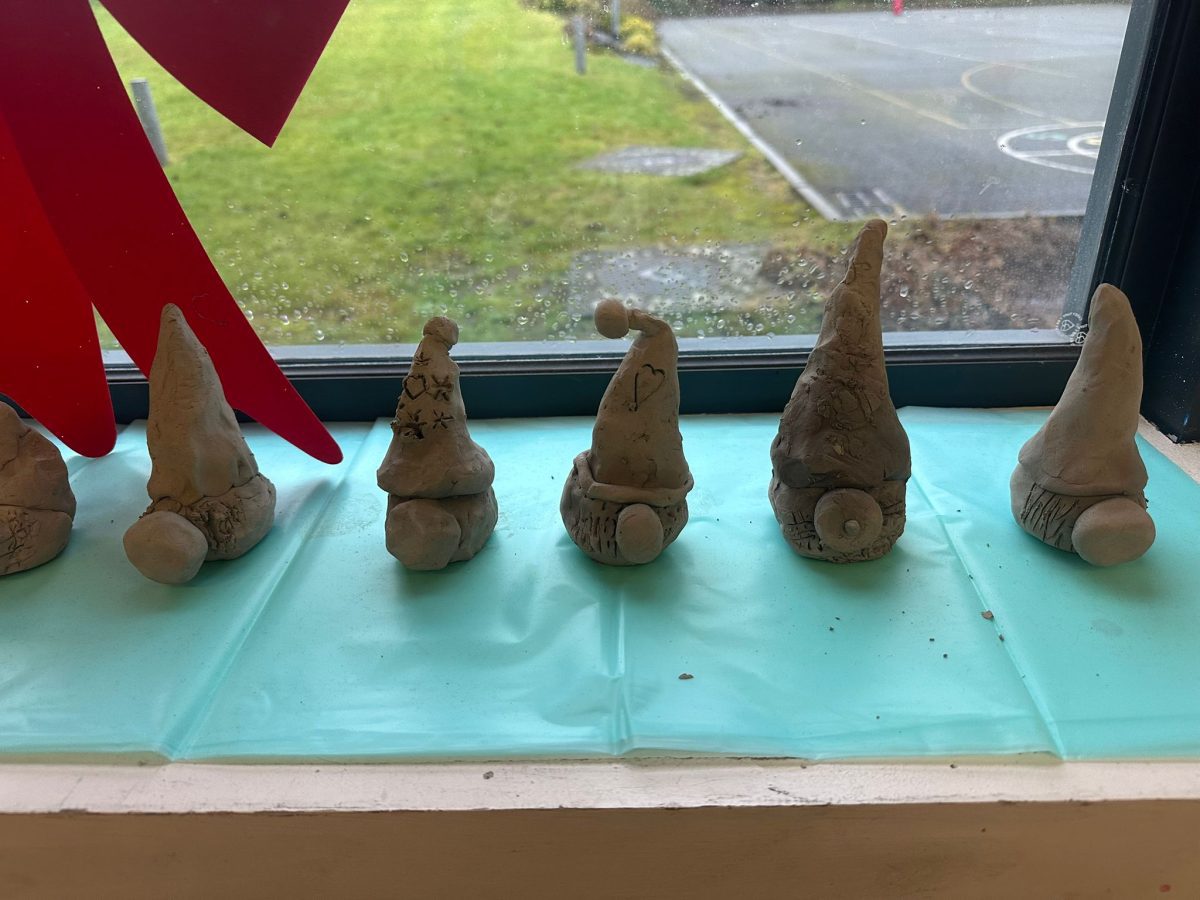 A mixture of photos of December in 1st Class. Photos of the raffle, Christmas jumper day and for Christmas art we made Christmas gonks using clay and then some paintings.