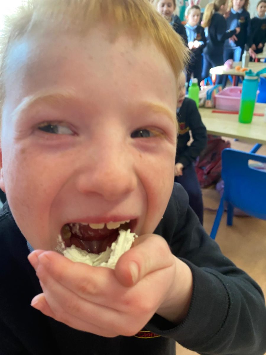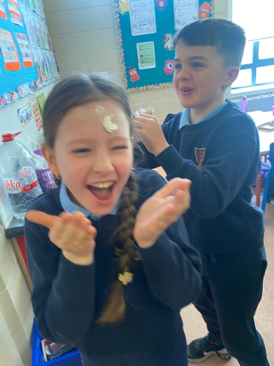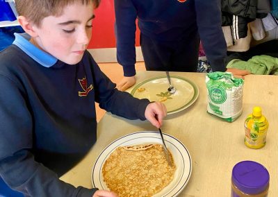 The say a photo speaks volumes and as you can see from these photos Pancake Tuesday in 2nd class was lots of fun!
