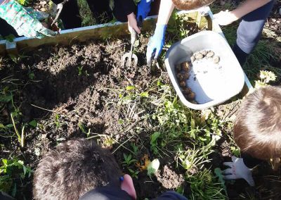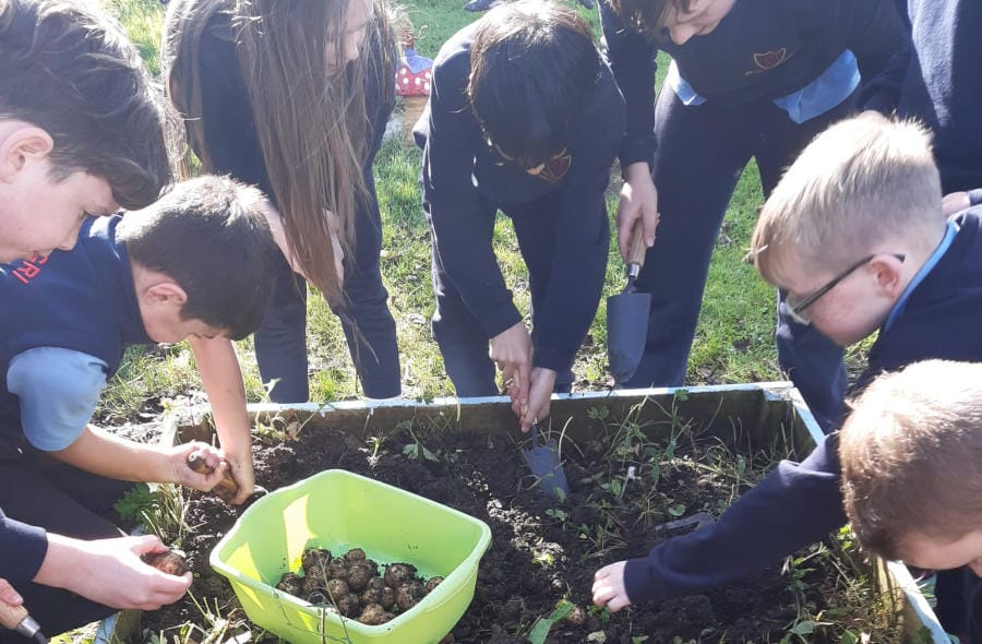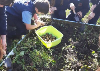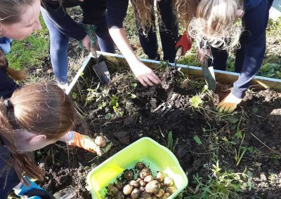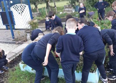 Our 5th Class were busy helping Mrs Lynch harvest our school potato beds. We have all our veg now harvested and are preparing our beds for planting veg for the coming year.
