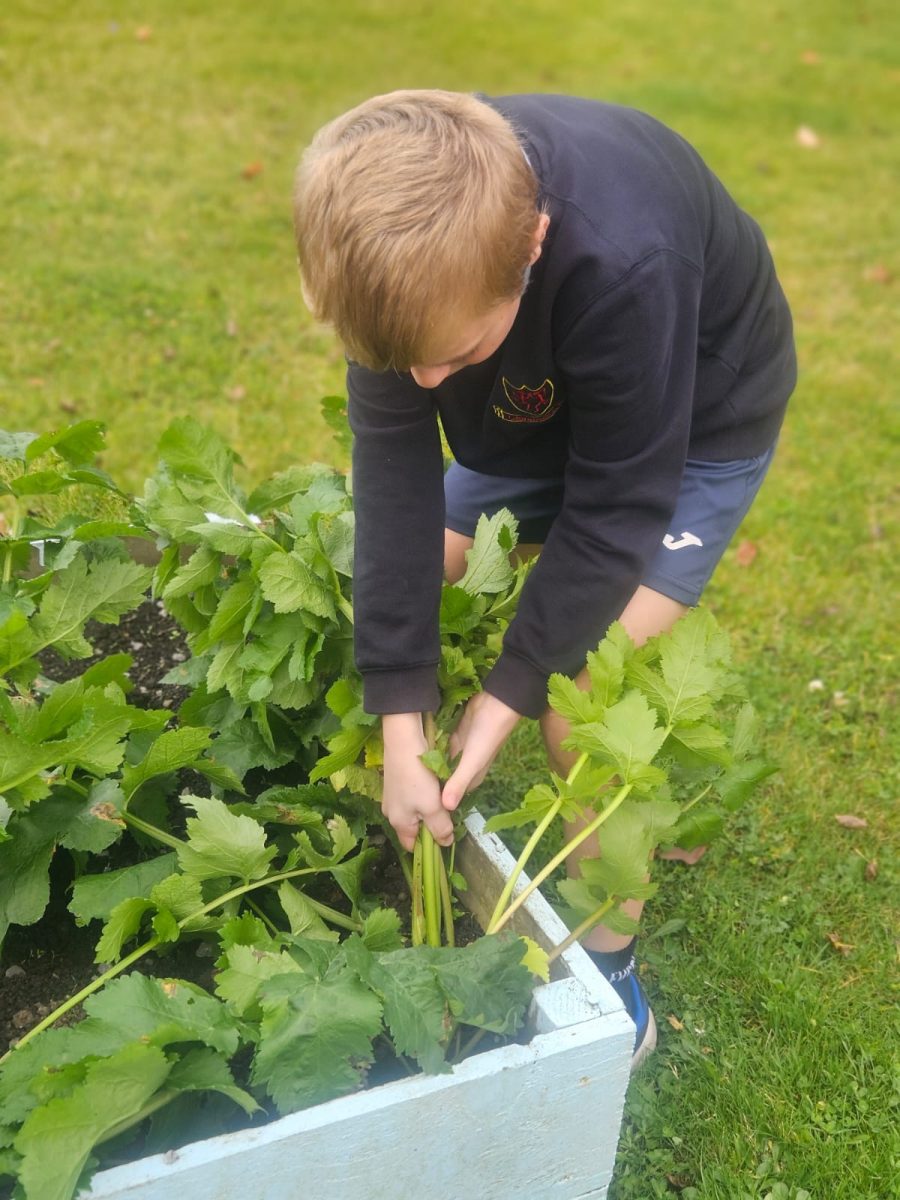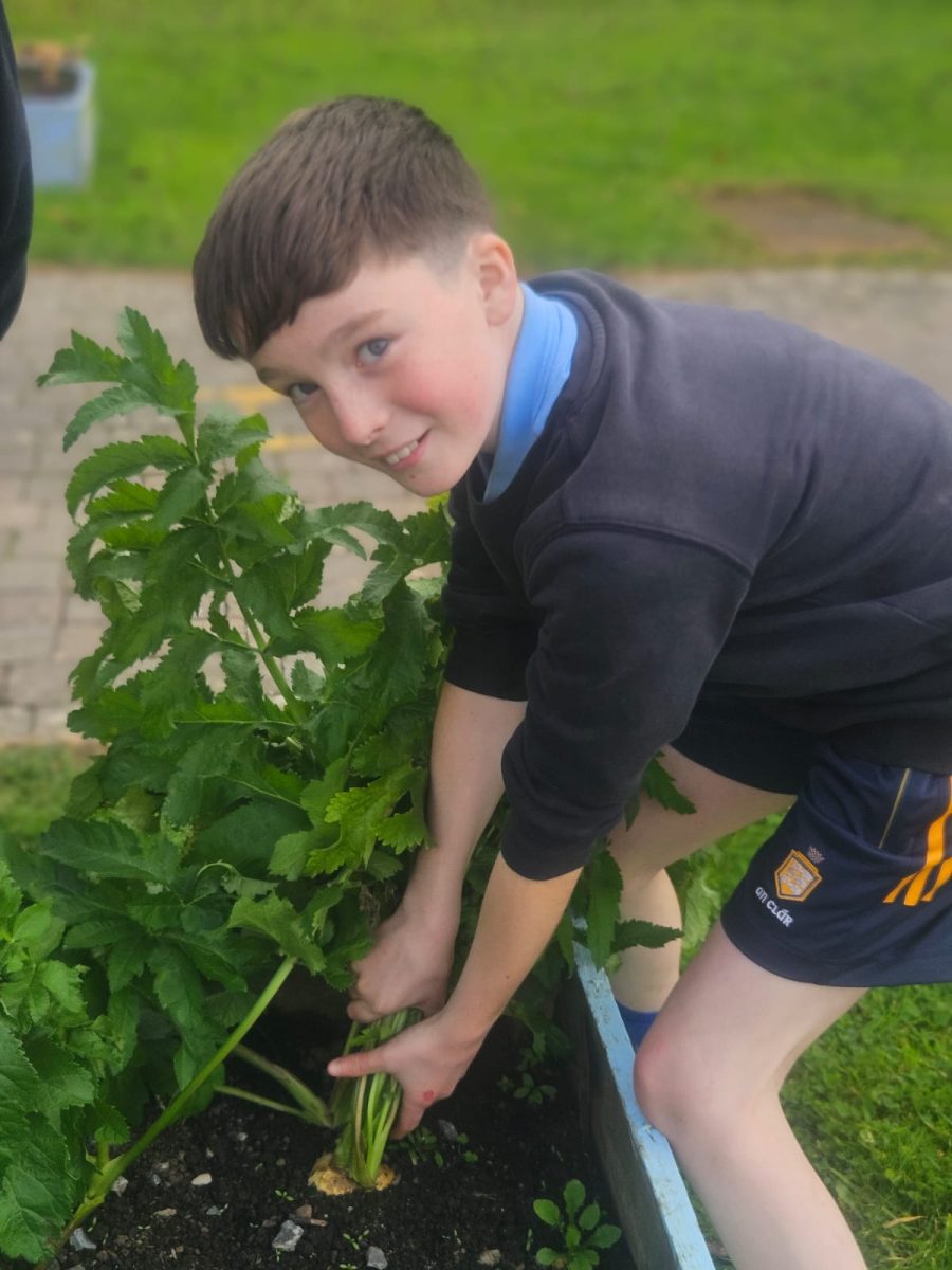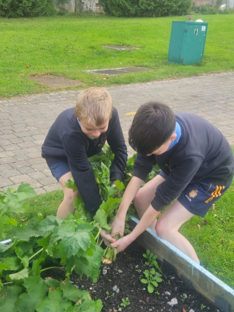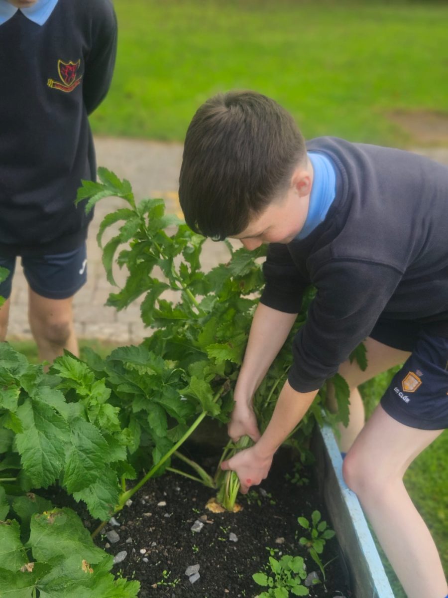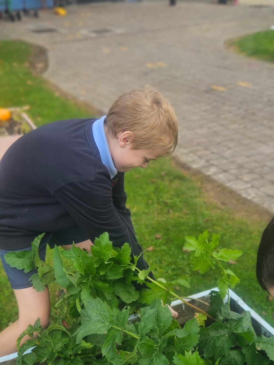 Our garden team harvesting the last of our vegetables, our parsnips. One in particular proved to be a big one and we had lots of laughs seeing who had the muscle to pull it out! The jury is out on who actually succeeded in its retrieval, this it was a group effort!