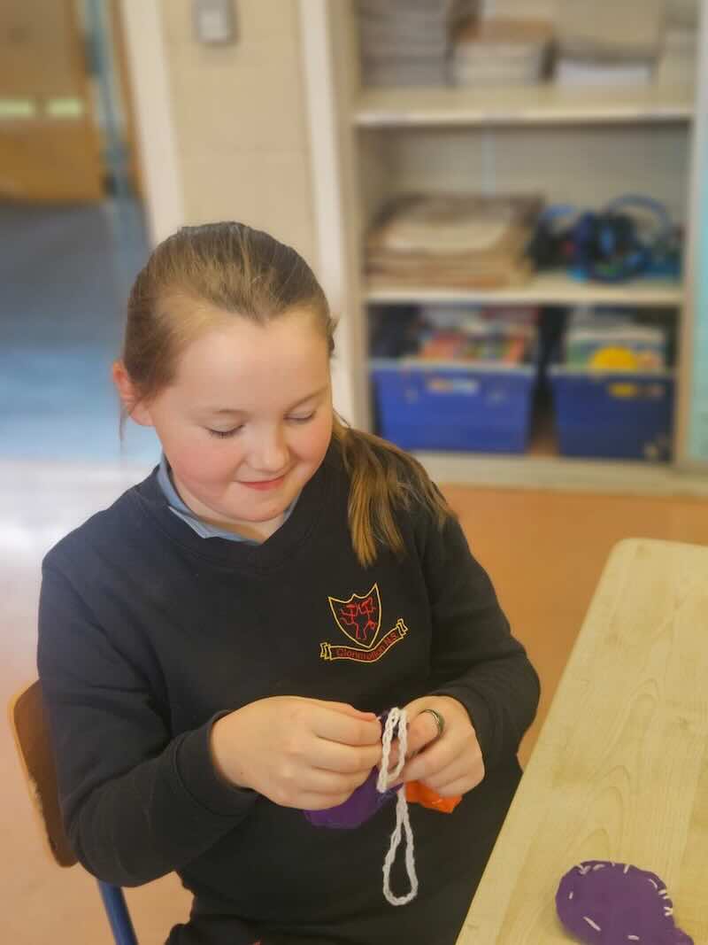 3rd Class making tree decorations for the Farmers Market.