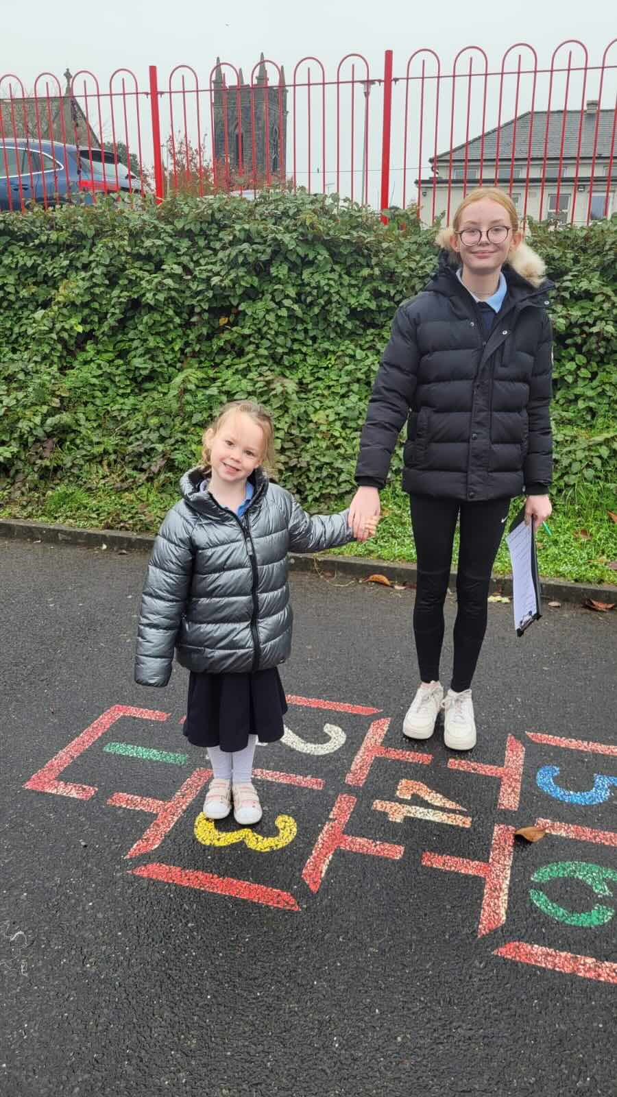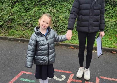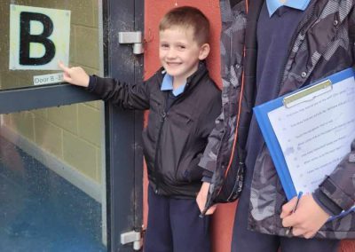 6th Class doing games for Maths week with the help from their buddies in Junior infants.