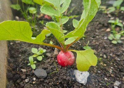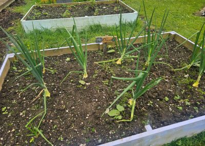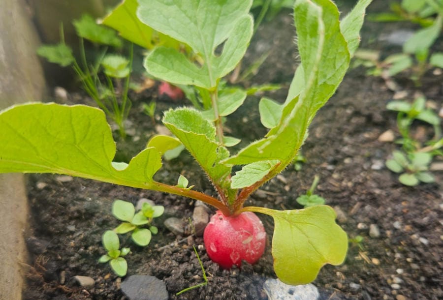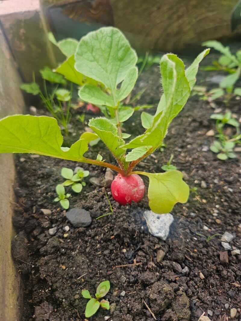 Our Vegetables are doing really well now that the sun has come out. The onions, Potatoes, Strawberries and especially our Radish is coming on really good.