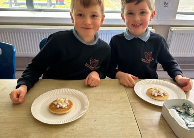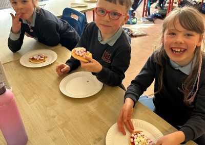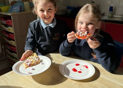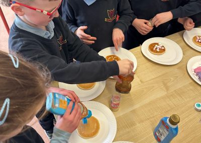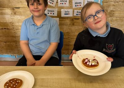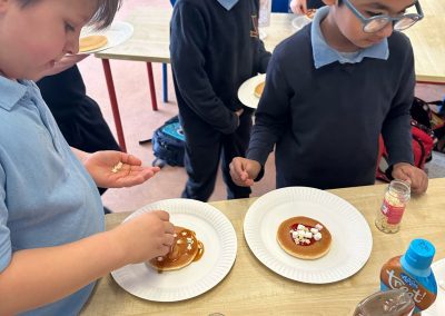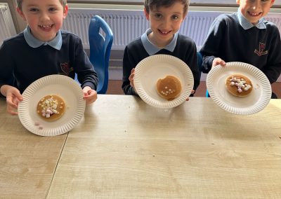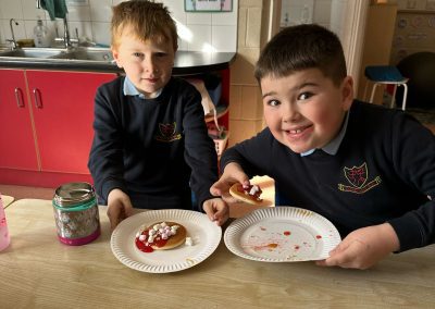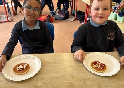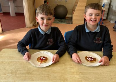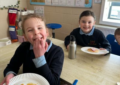 1st class enjoying their pancakes today thanks to Ms McCabe, smiles all round!