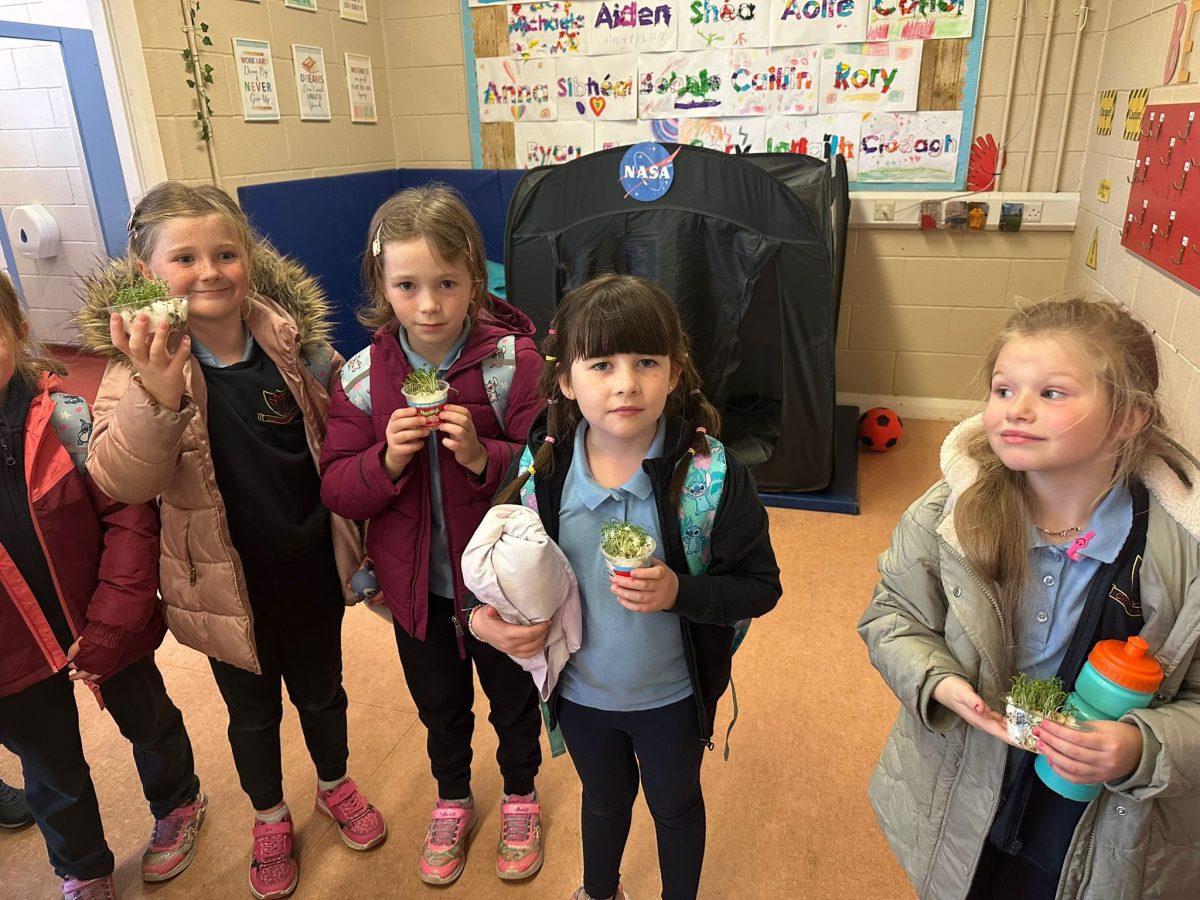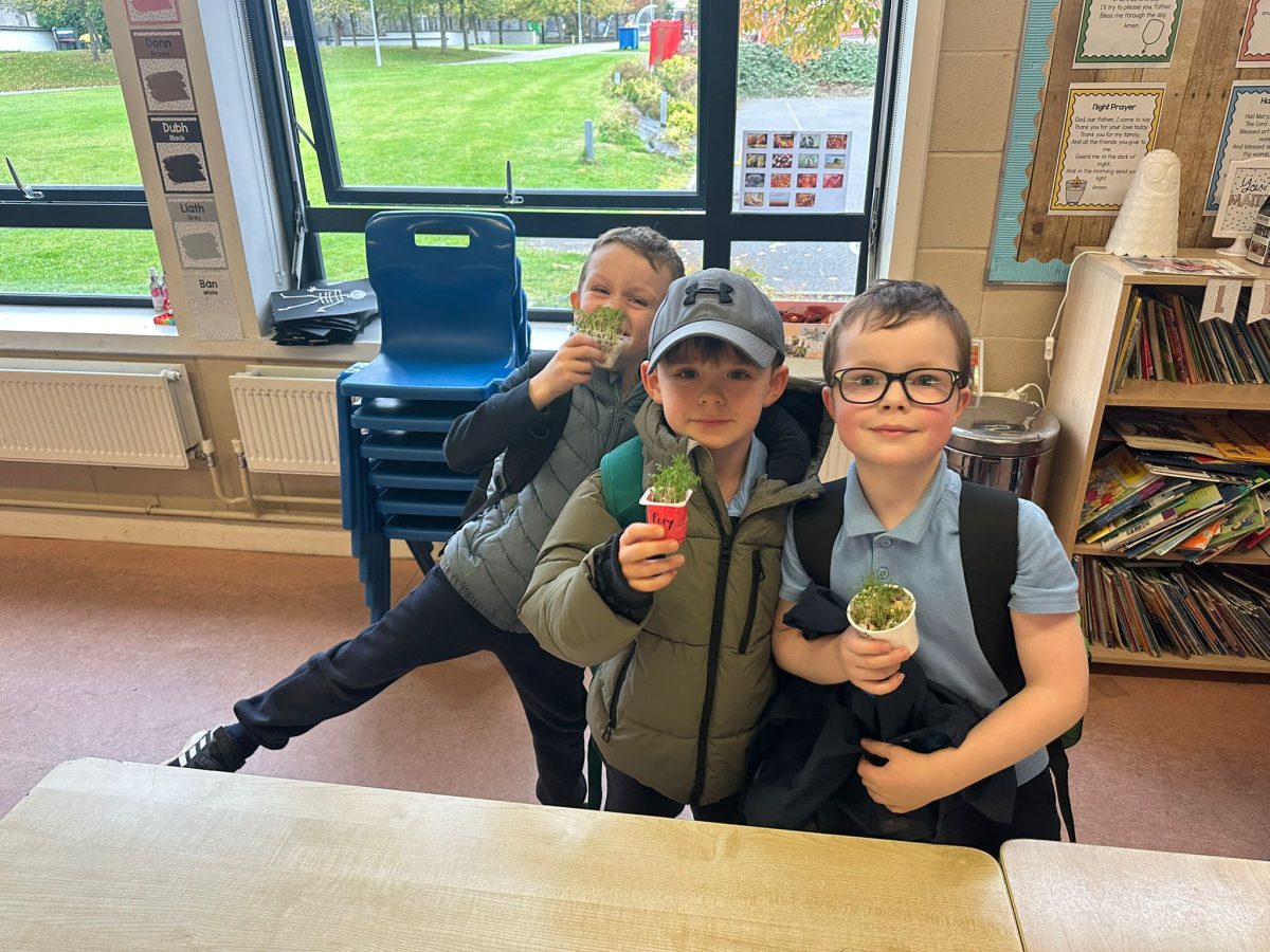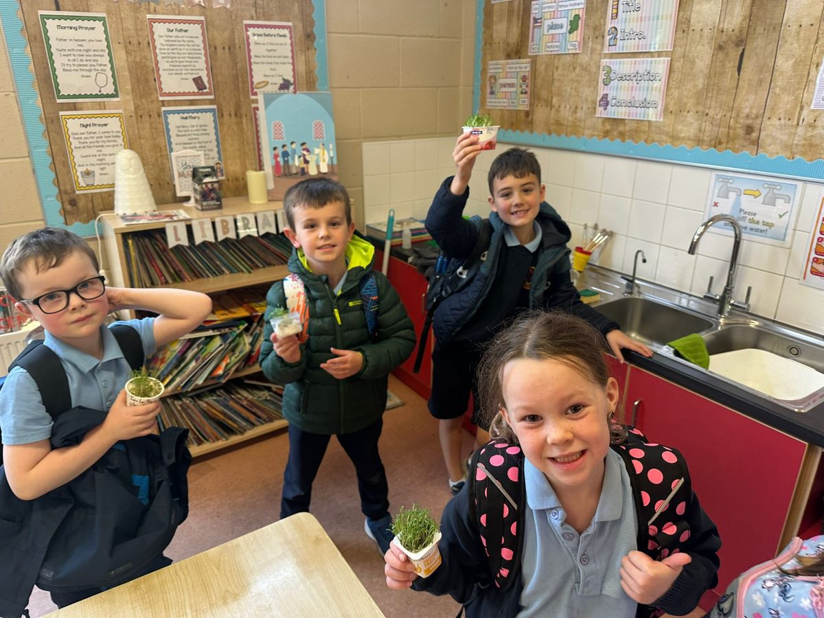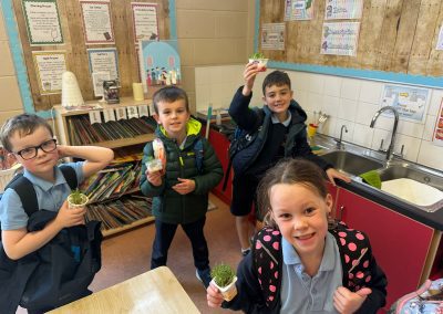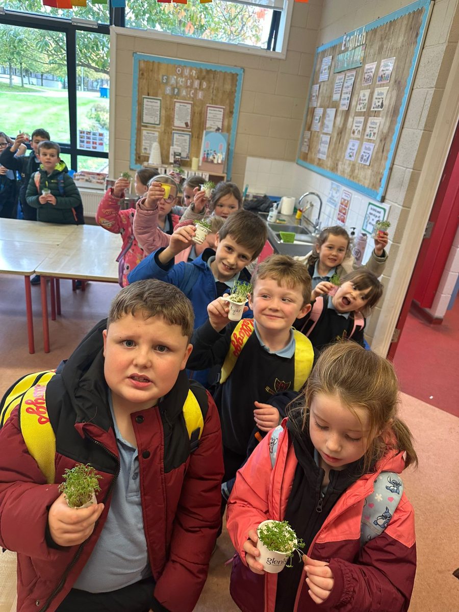 The children in 1st class enjoyed planting and watching their Cress seeds grow as part of Science in class