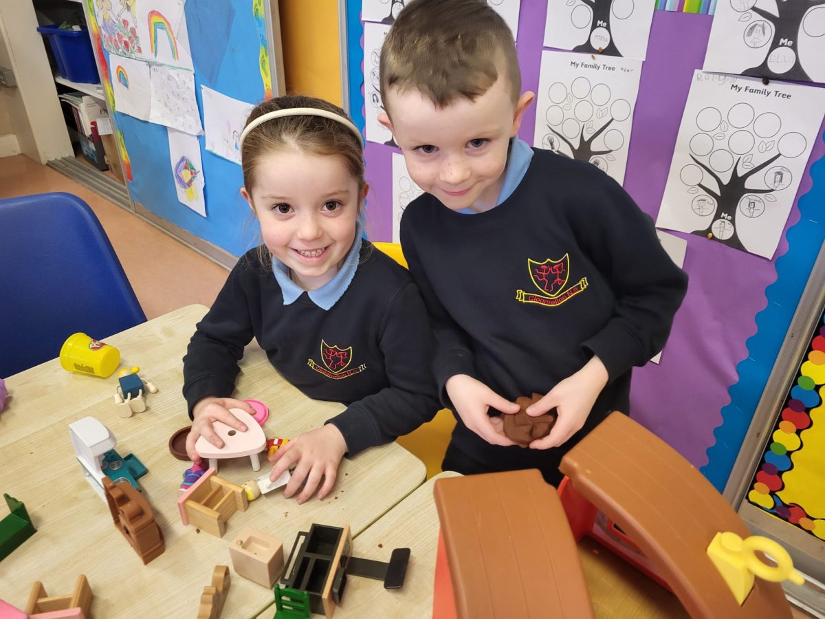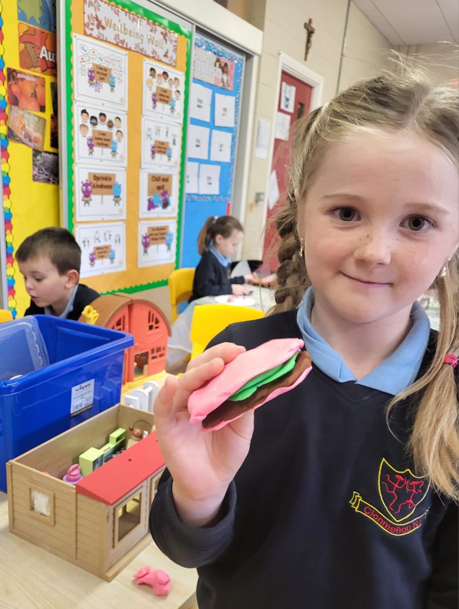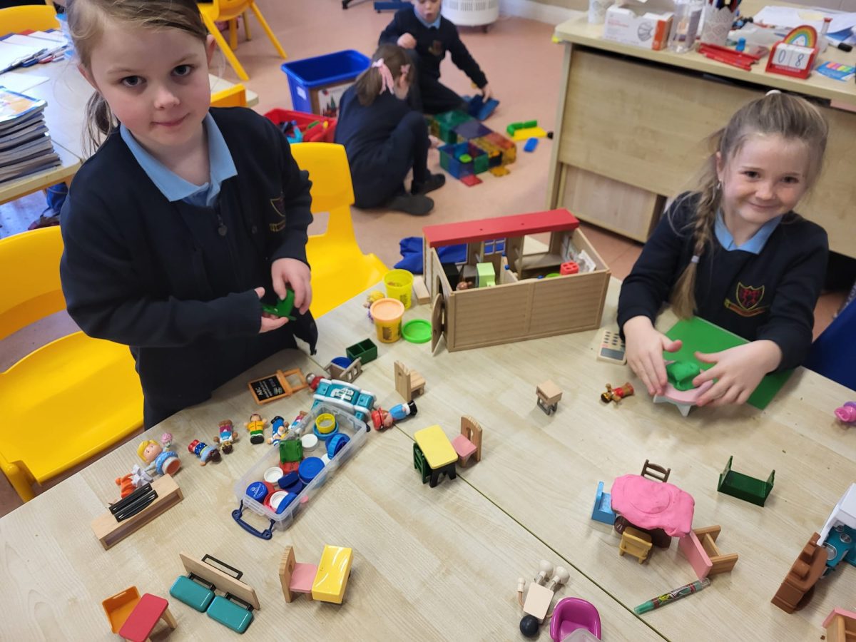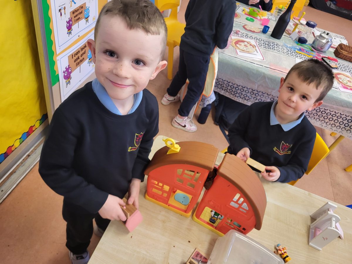Fine motor: Working with playdough/writing menus/cutting and sticking/designing tea sets.