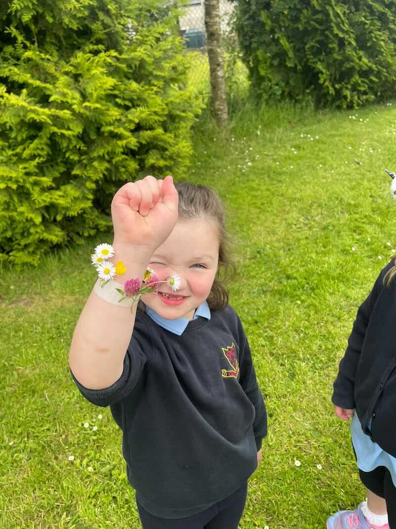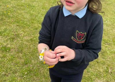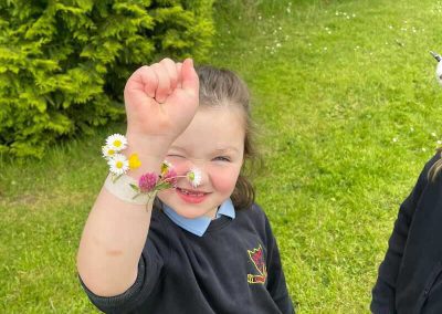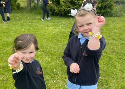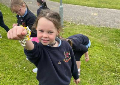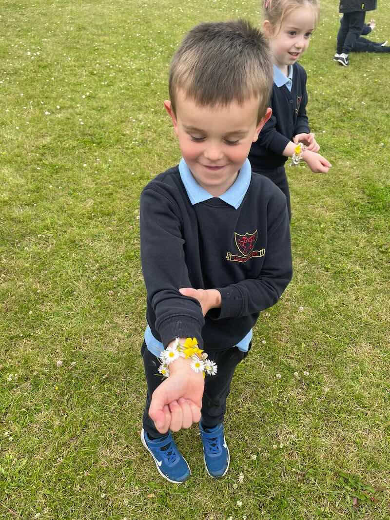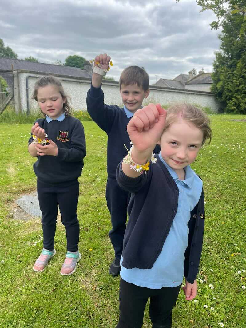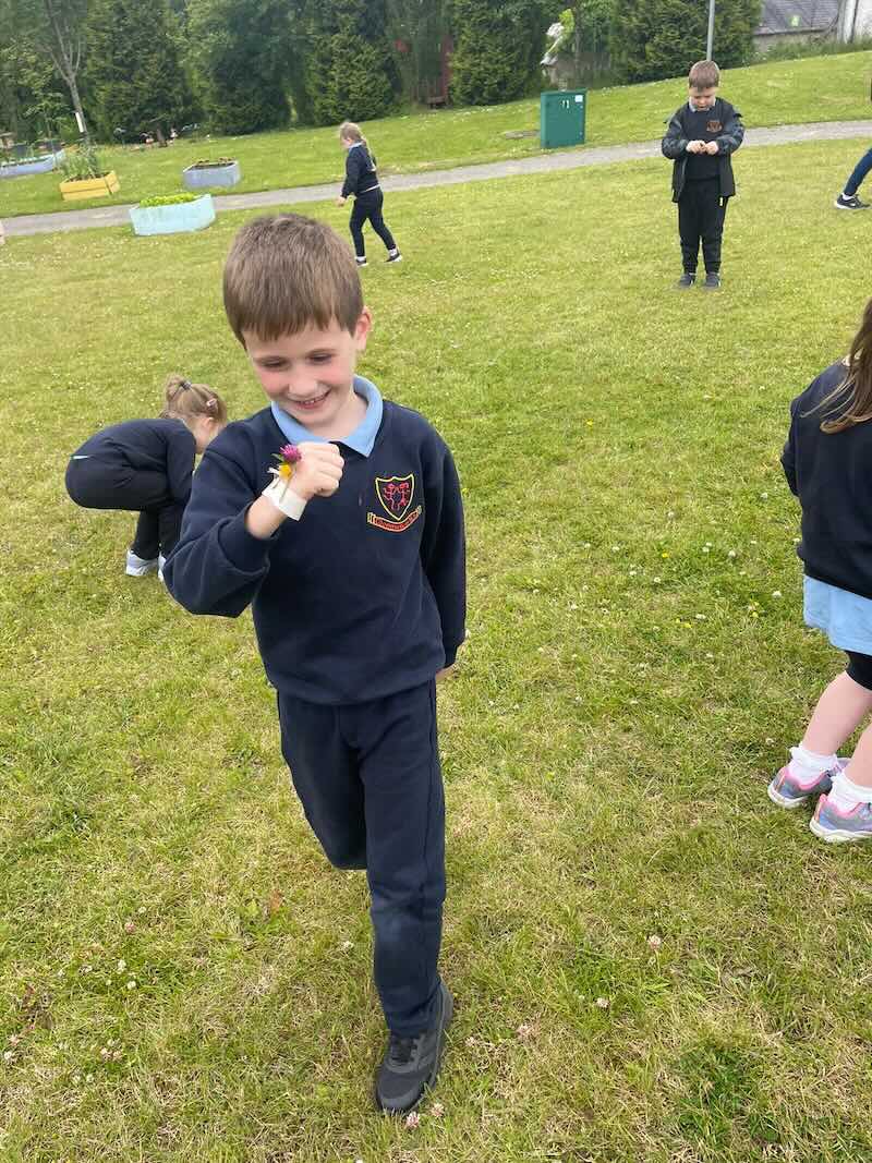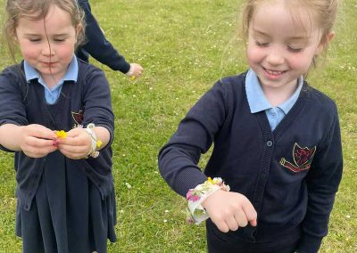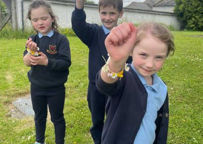 As part of SESE the children from Junior Infants enjoyed exploring the flowers in the school. They picked some and made flower bracelets which they were very proud of.