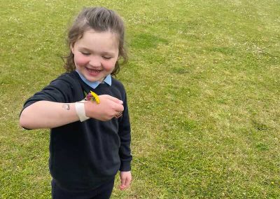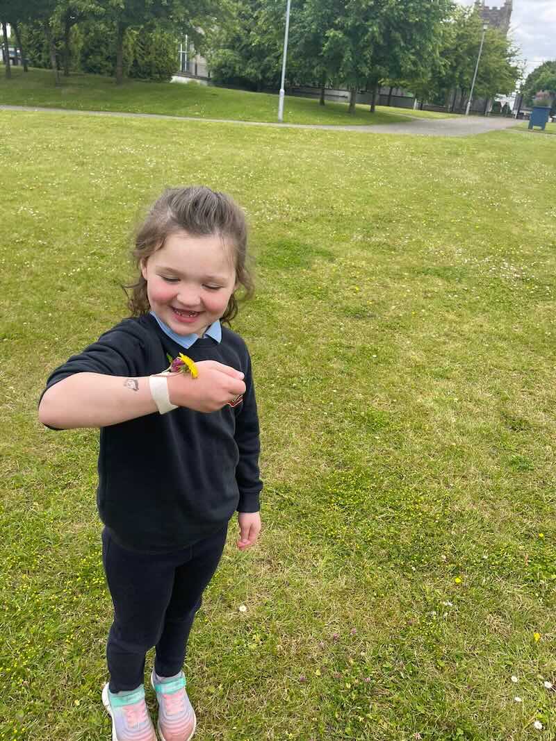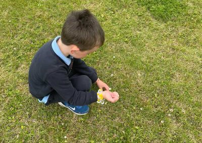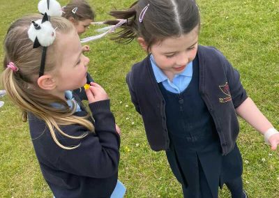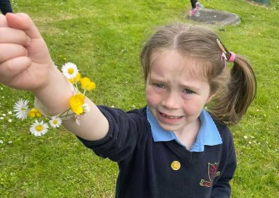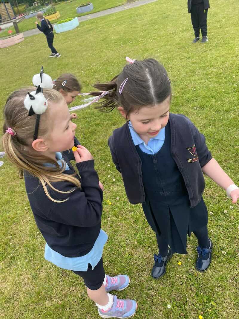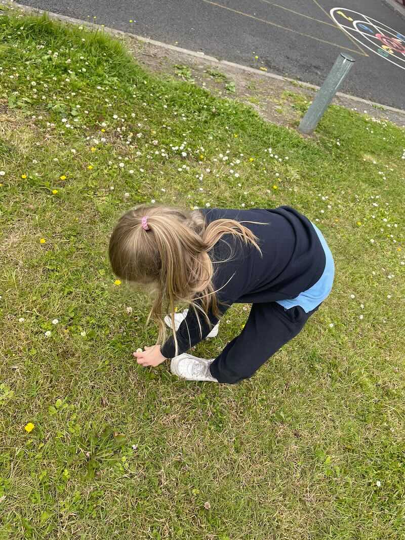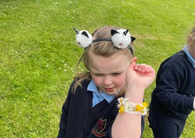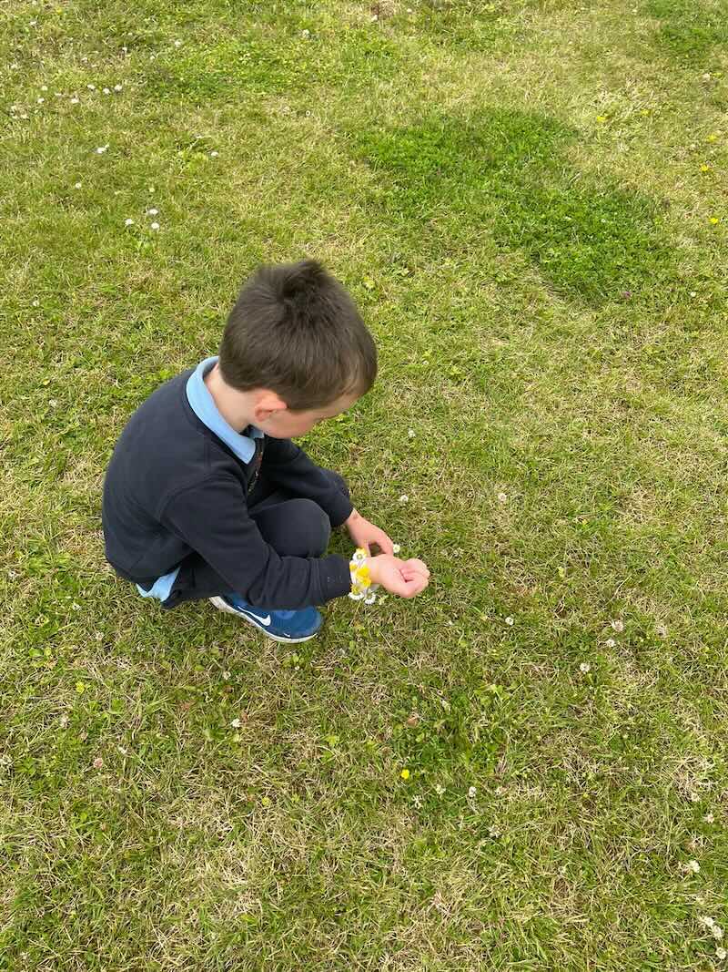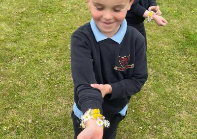 As part of SESE the children from Junior Infants enjoyed exploring the flowers in the school. They picked some and made flower bracelets which they were very proud of.
