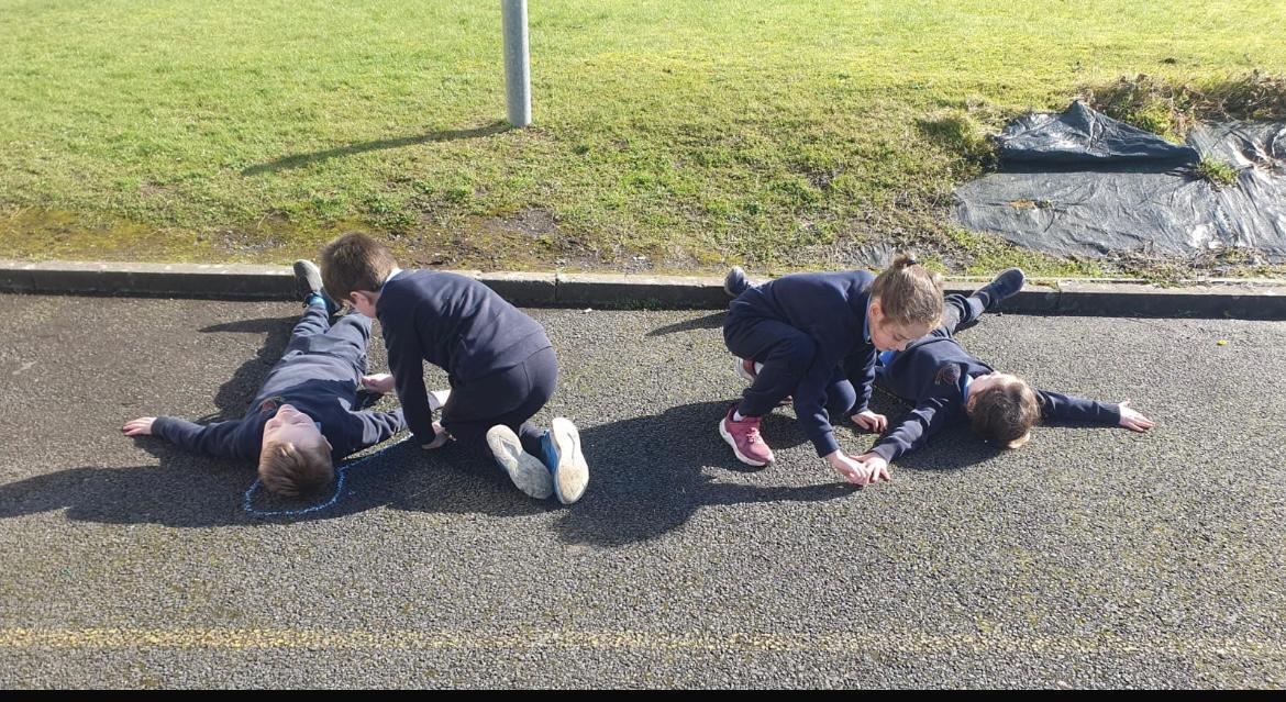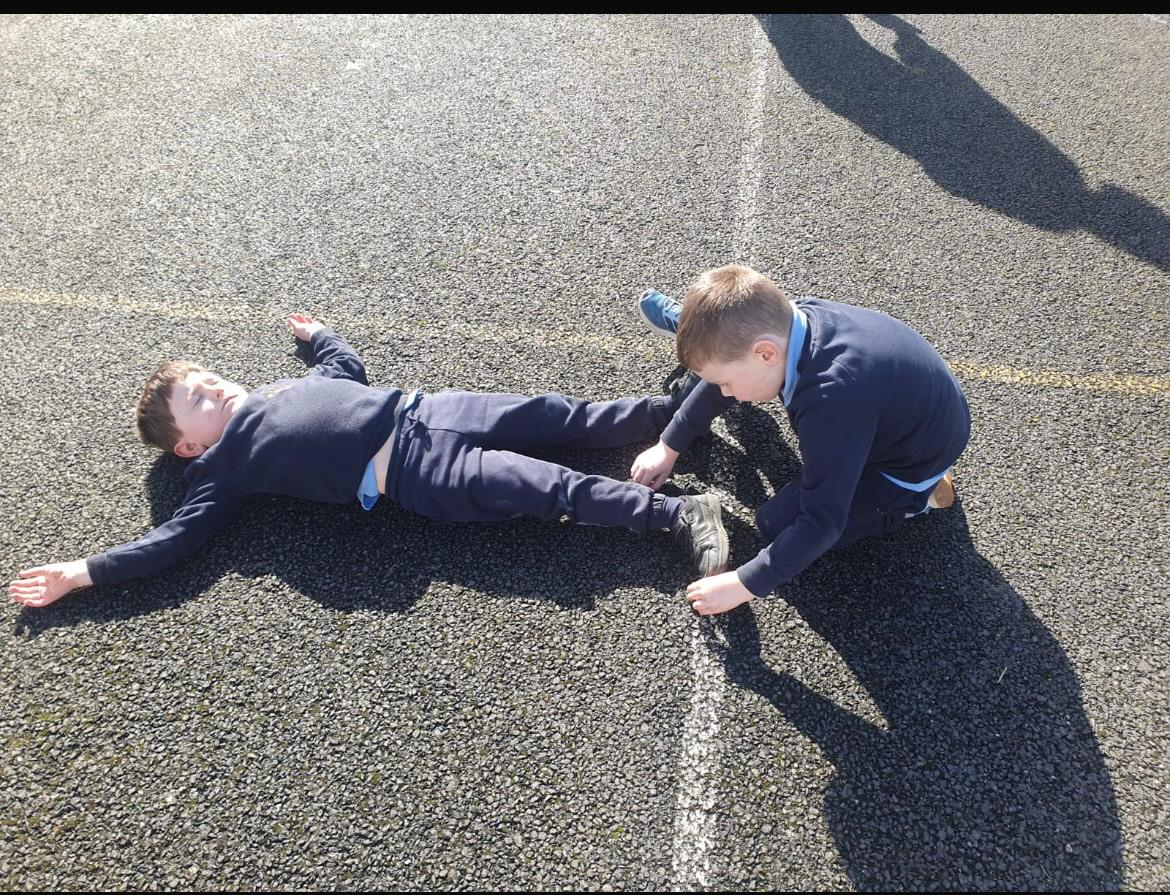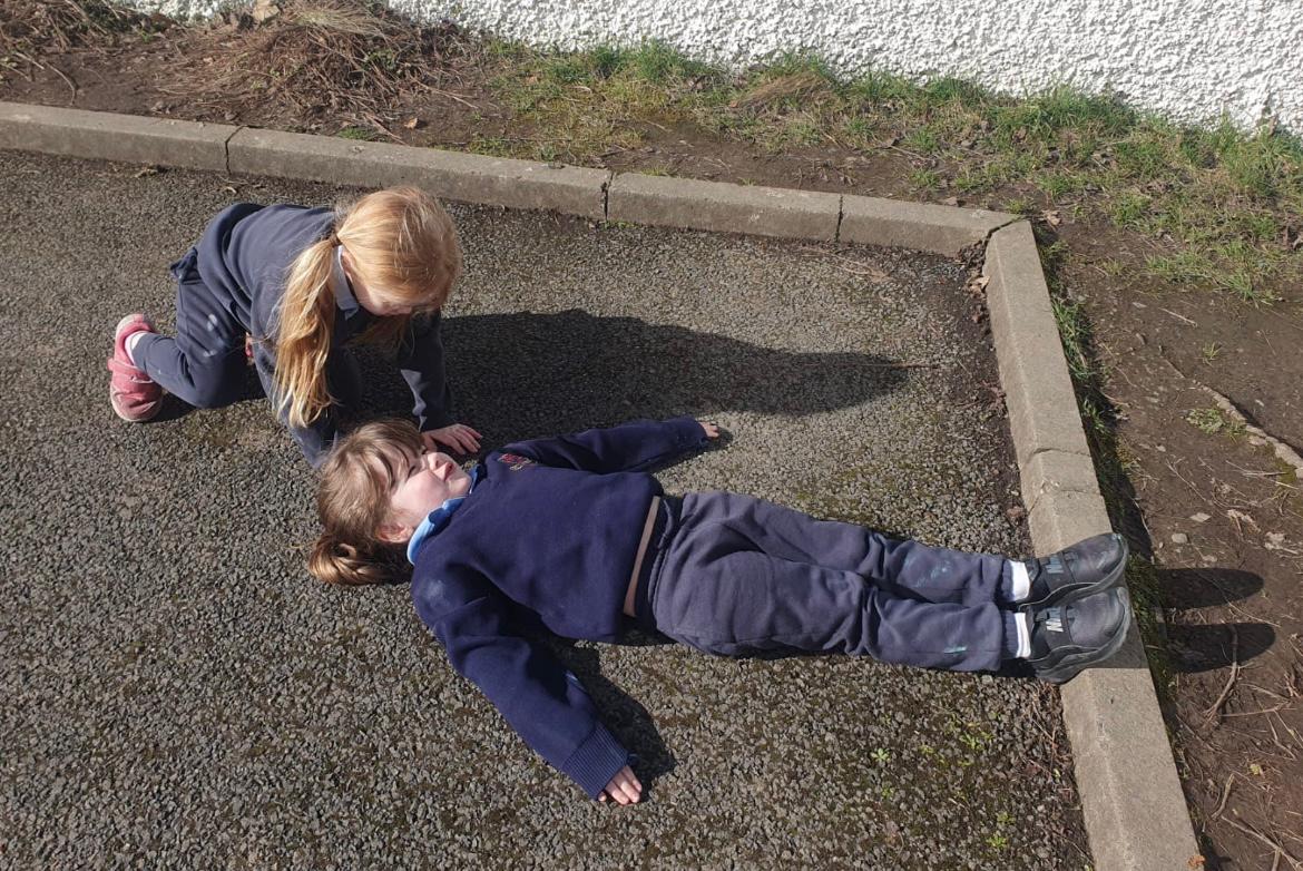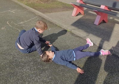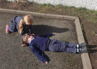 We made the best of the sunshine one afternoon last week and went outside to measure and compare our height. We found out who was taller and shorter. We also learned about light and shadows.