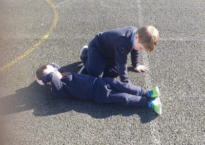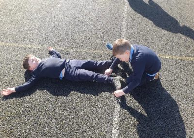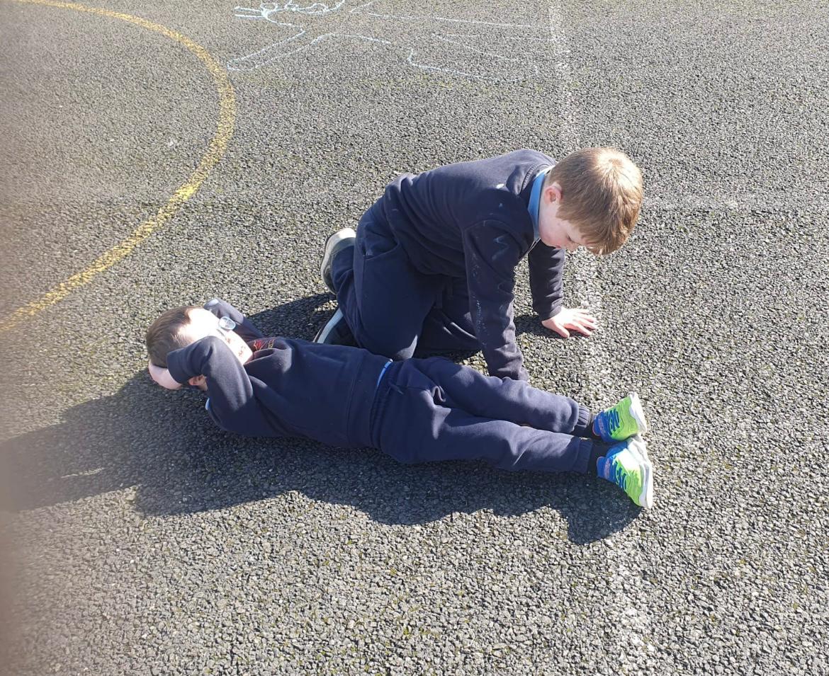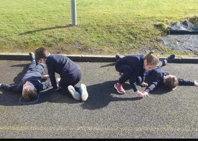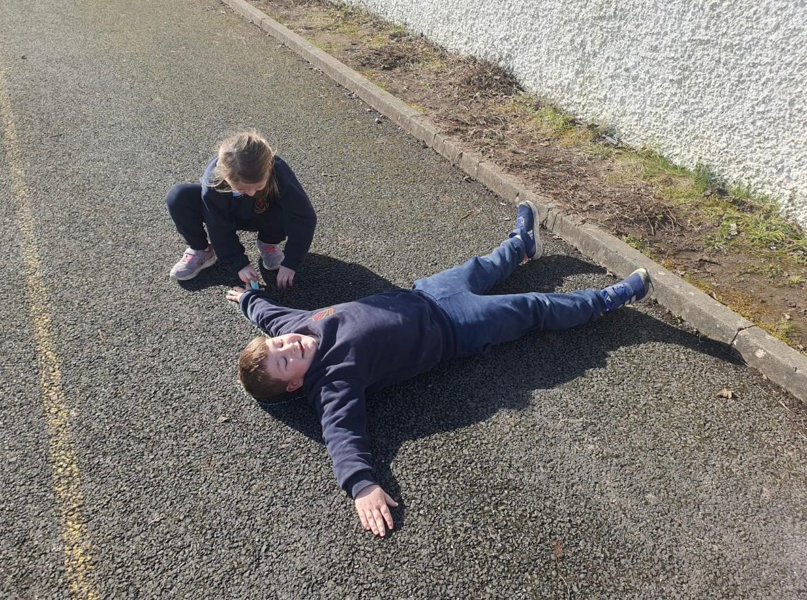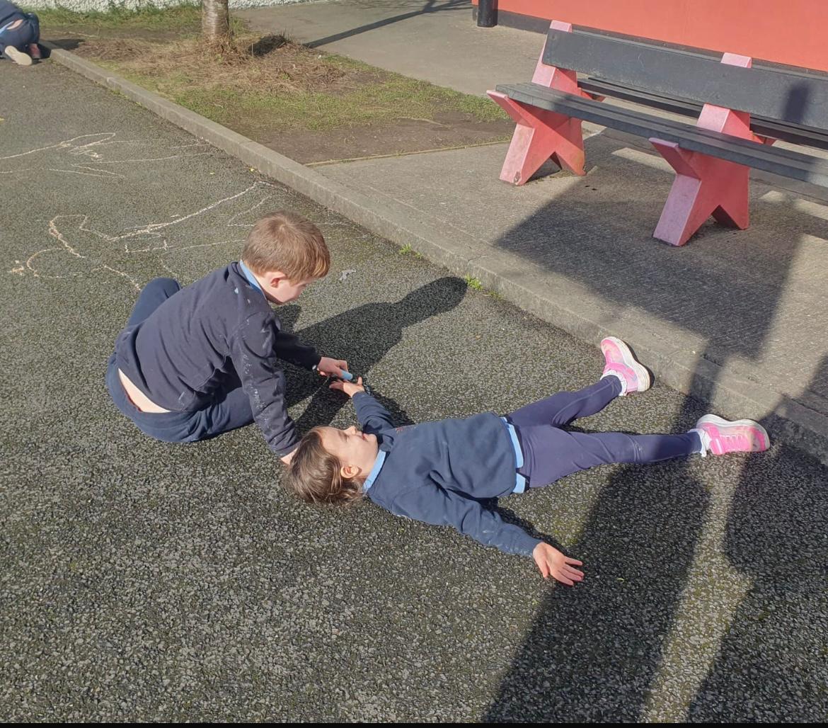 We made the best of the sunshine one afternoon last week and went outside to measure and compare our height. We found out who was taller and shorter. We also learned about light and shadows.