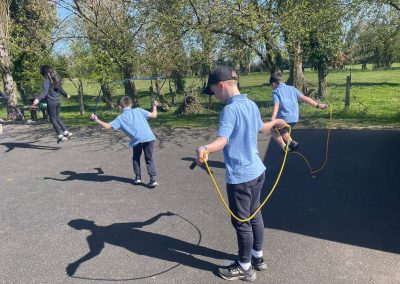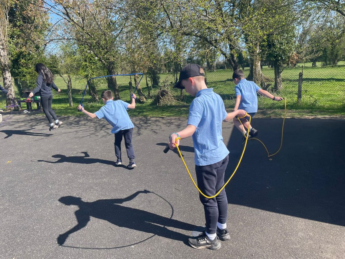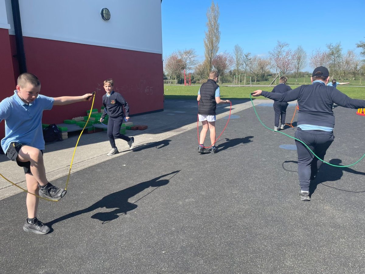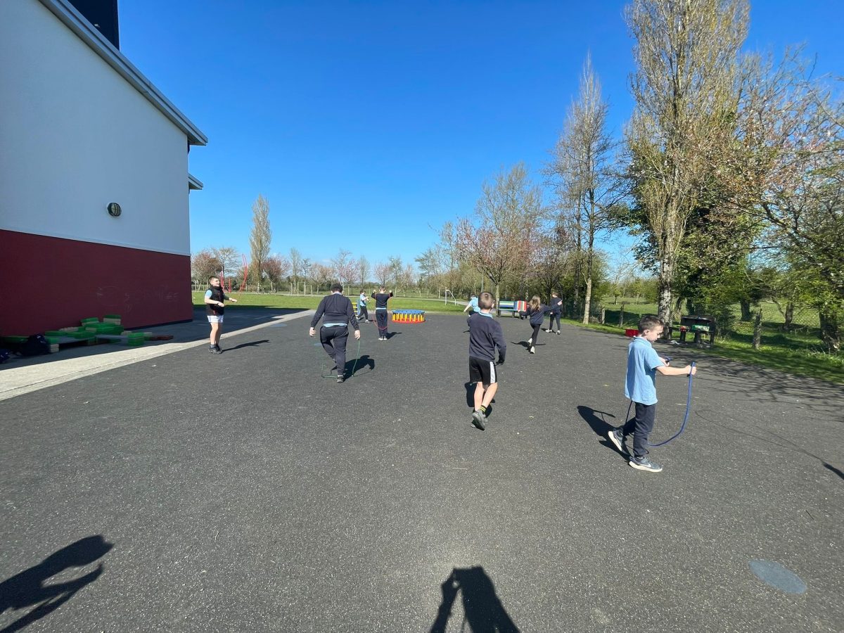 4th class enjoying the sunshine and working on their skipping! We’ve taken on the skip around Europe challenge.. we skip every day and count up our skips to see how many km we cover around Europe.