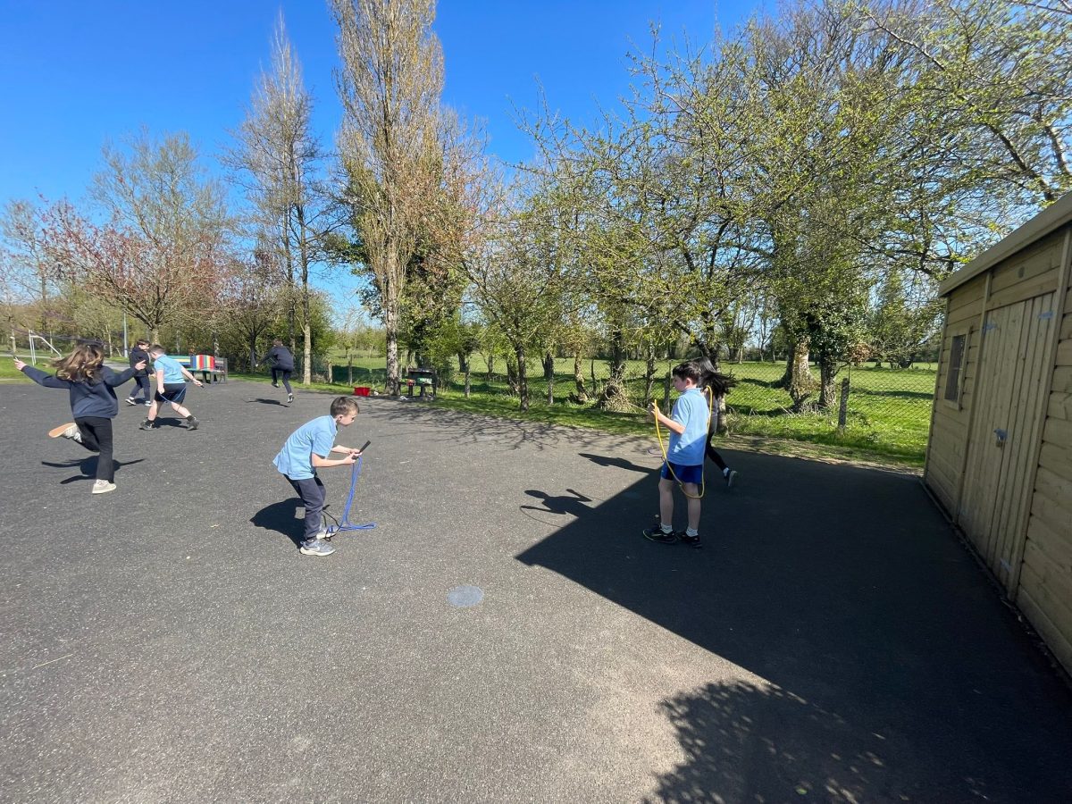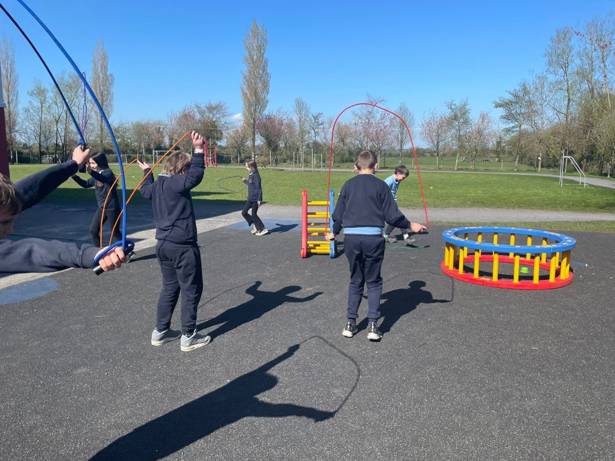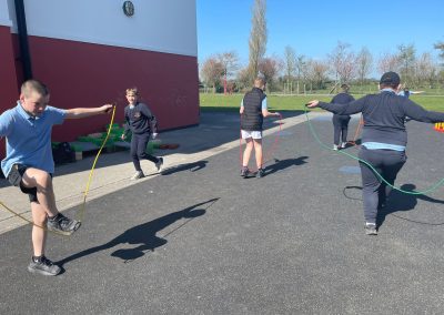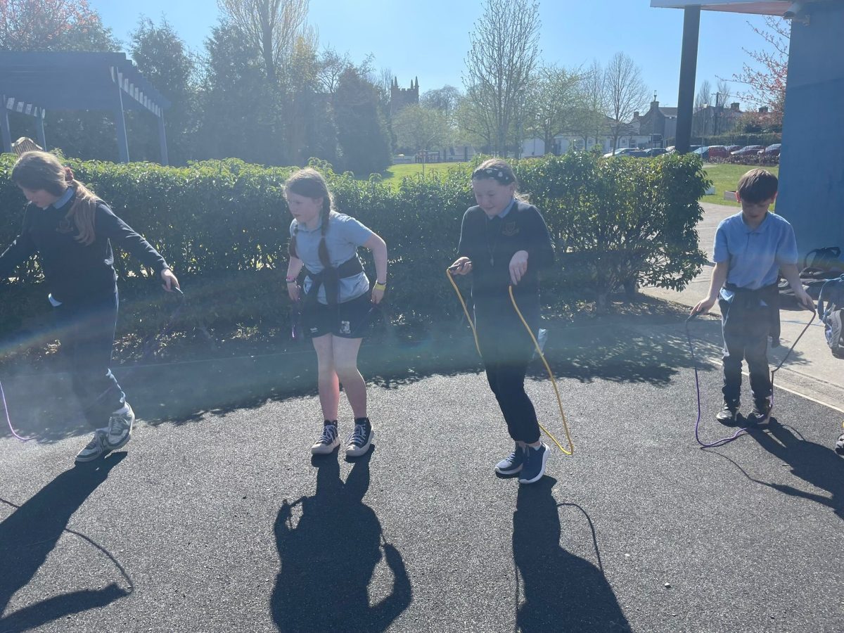 4th class enjoying the sunshine and working on their skipping! We’ve taken on the skip around Europe challenge.. we skip every day and count up our skips to see how many km we cover around Europe.