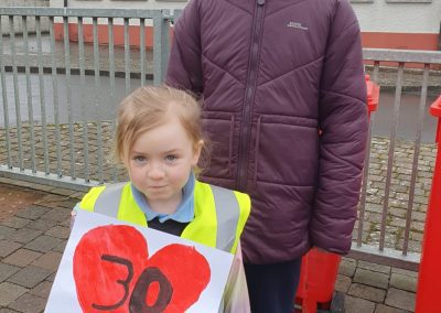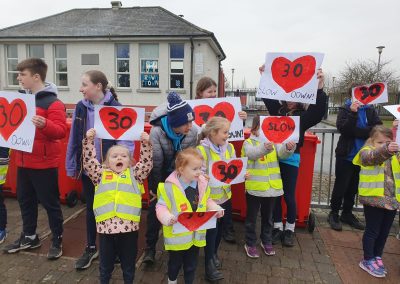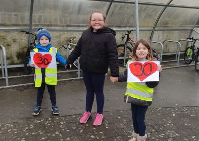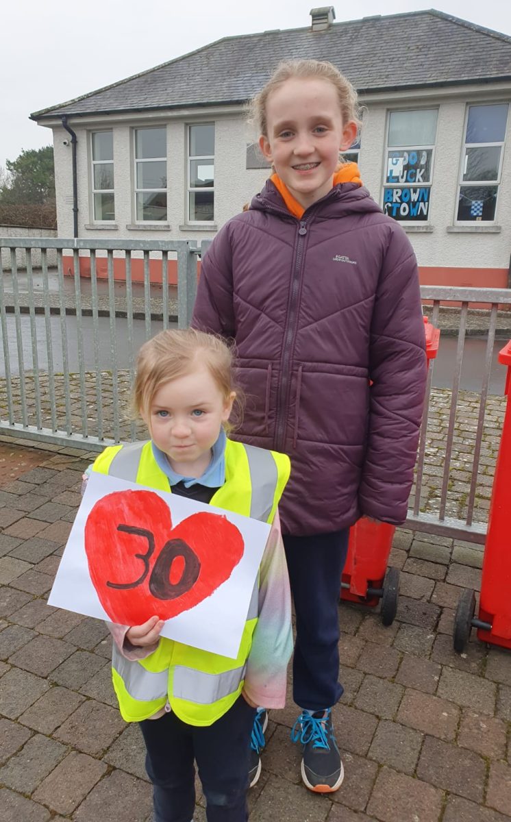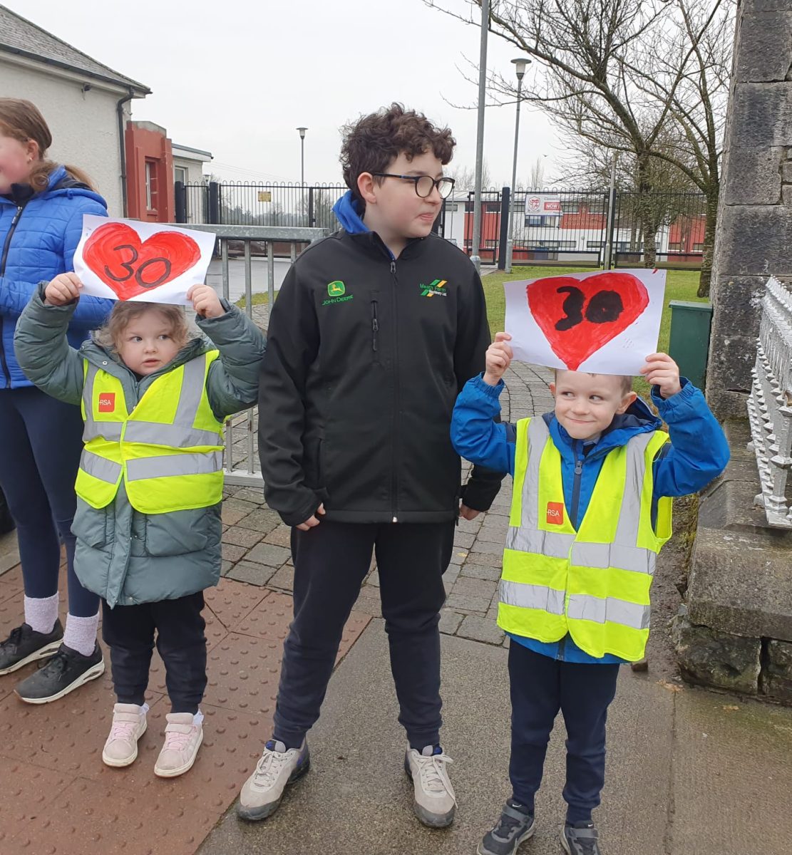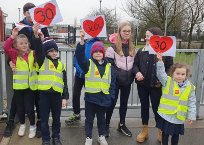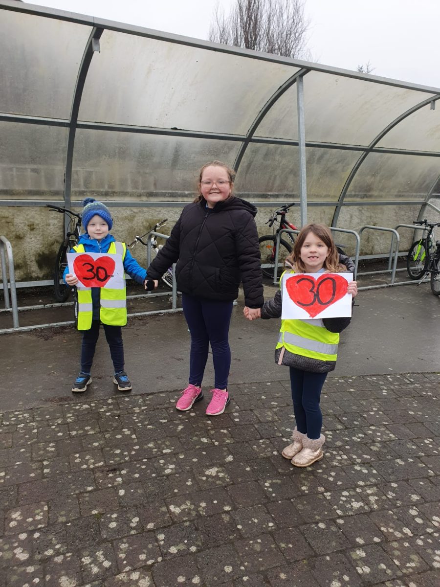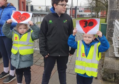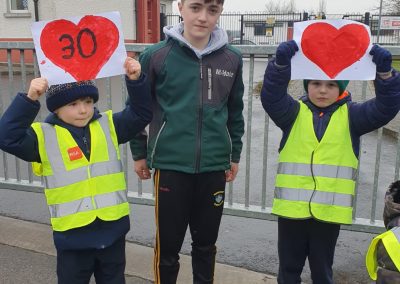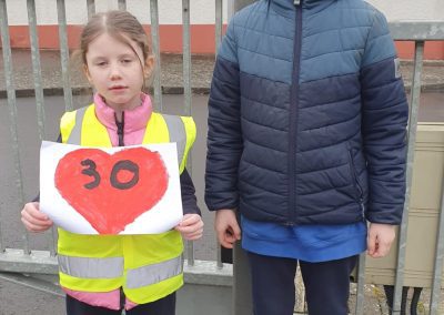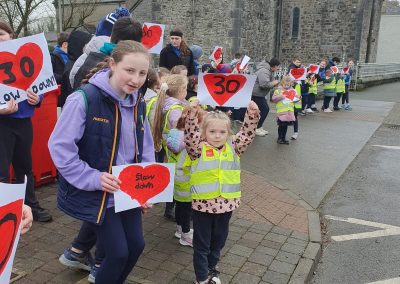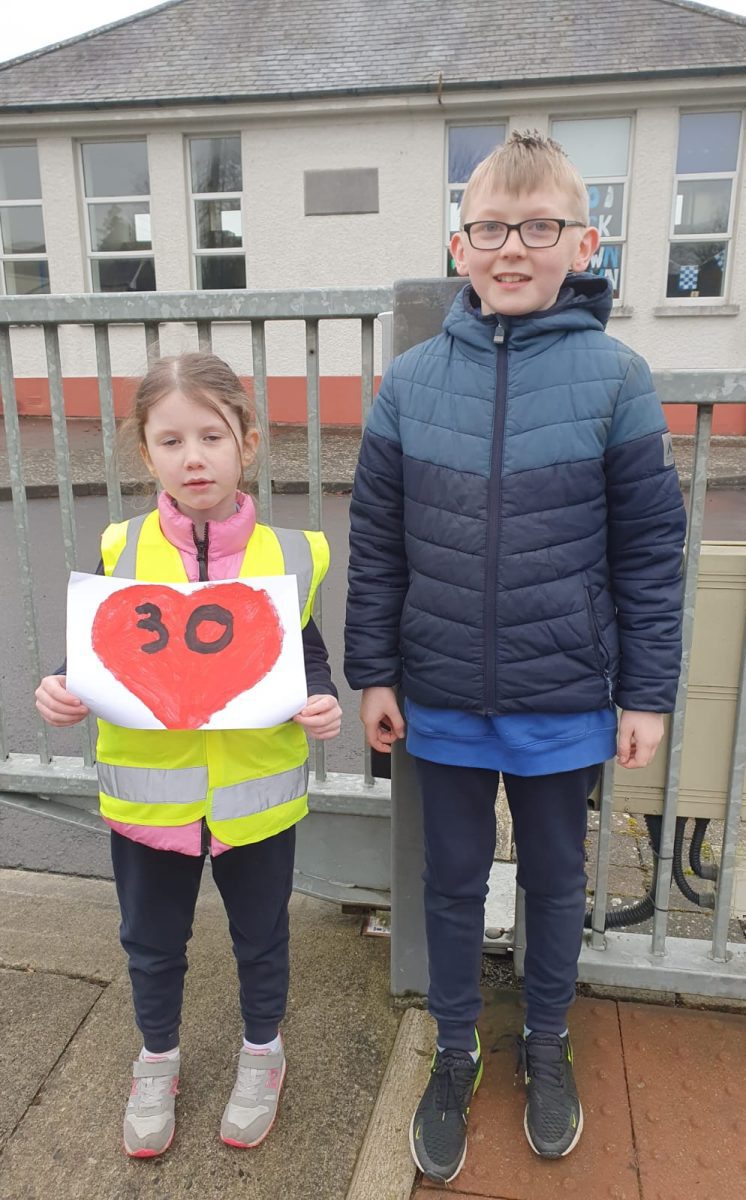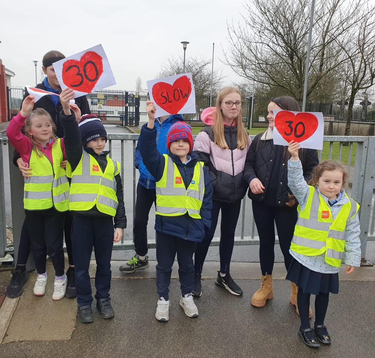 Some recent photos of Junior infants with their 6th Class buddies who took part in a speed awareness initiative outside the school to try encourage vehicles to slow down.