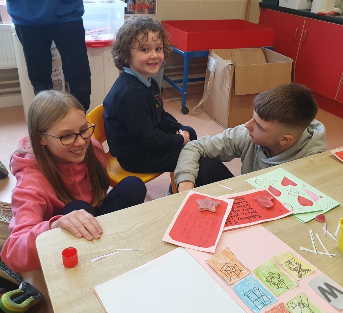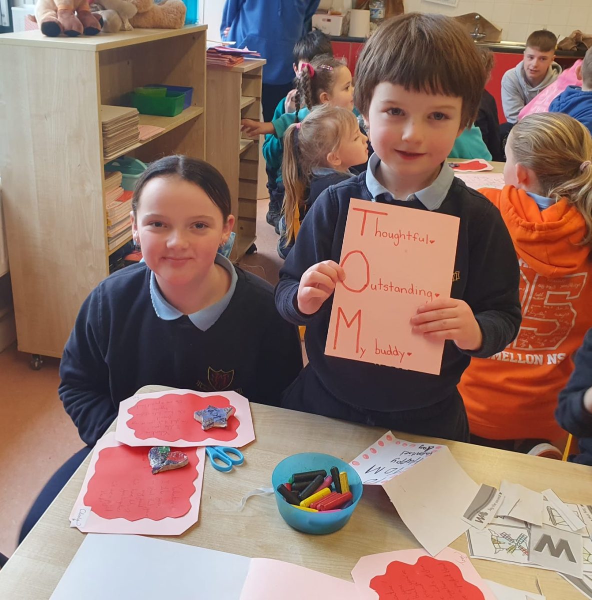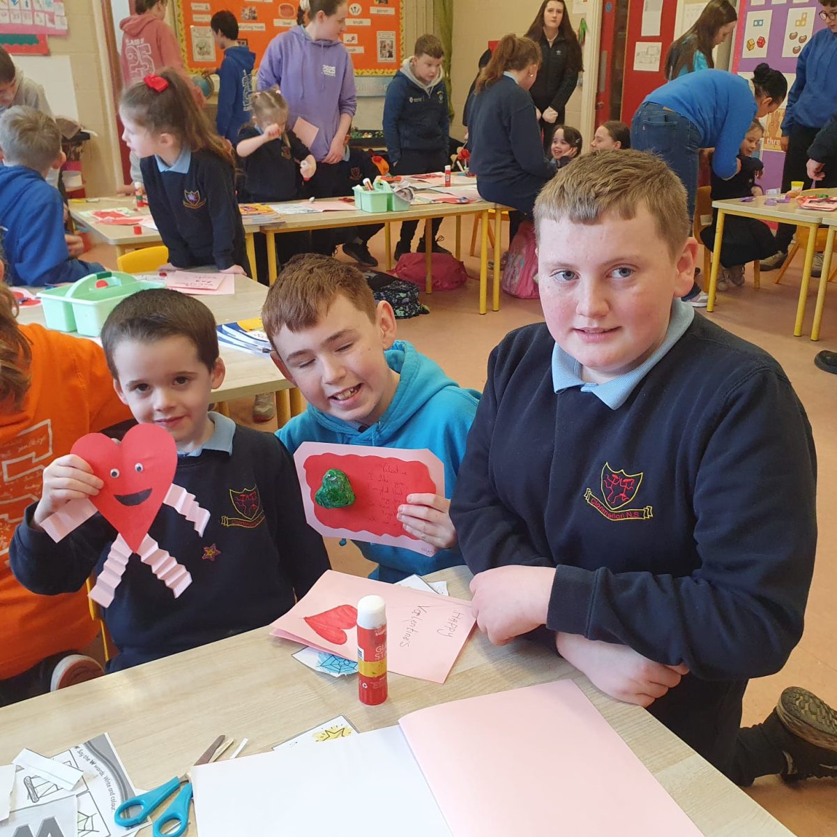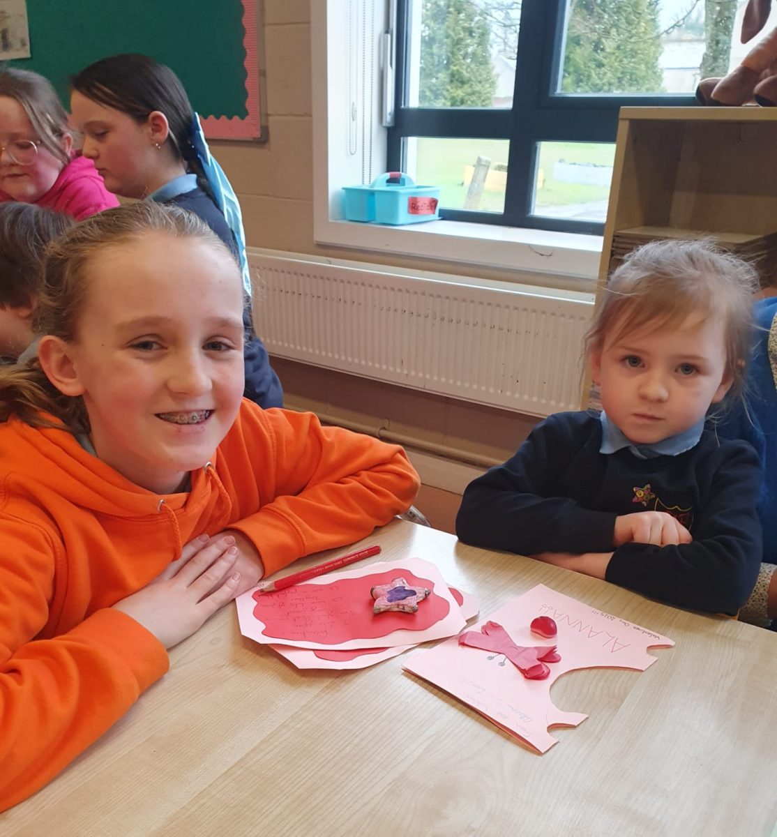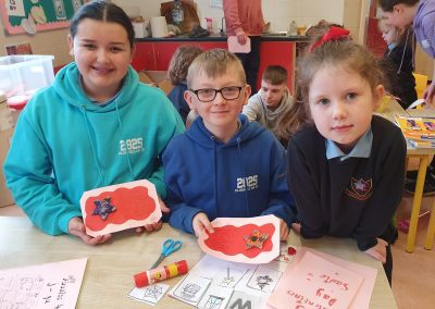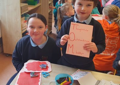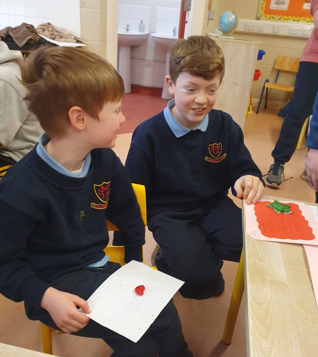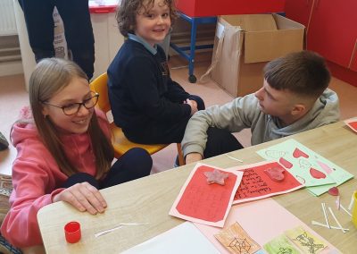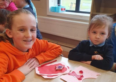 Valentines art with Junior Infants Buddies