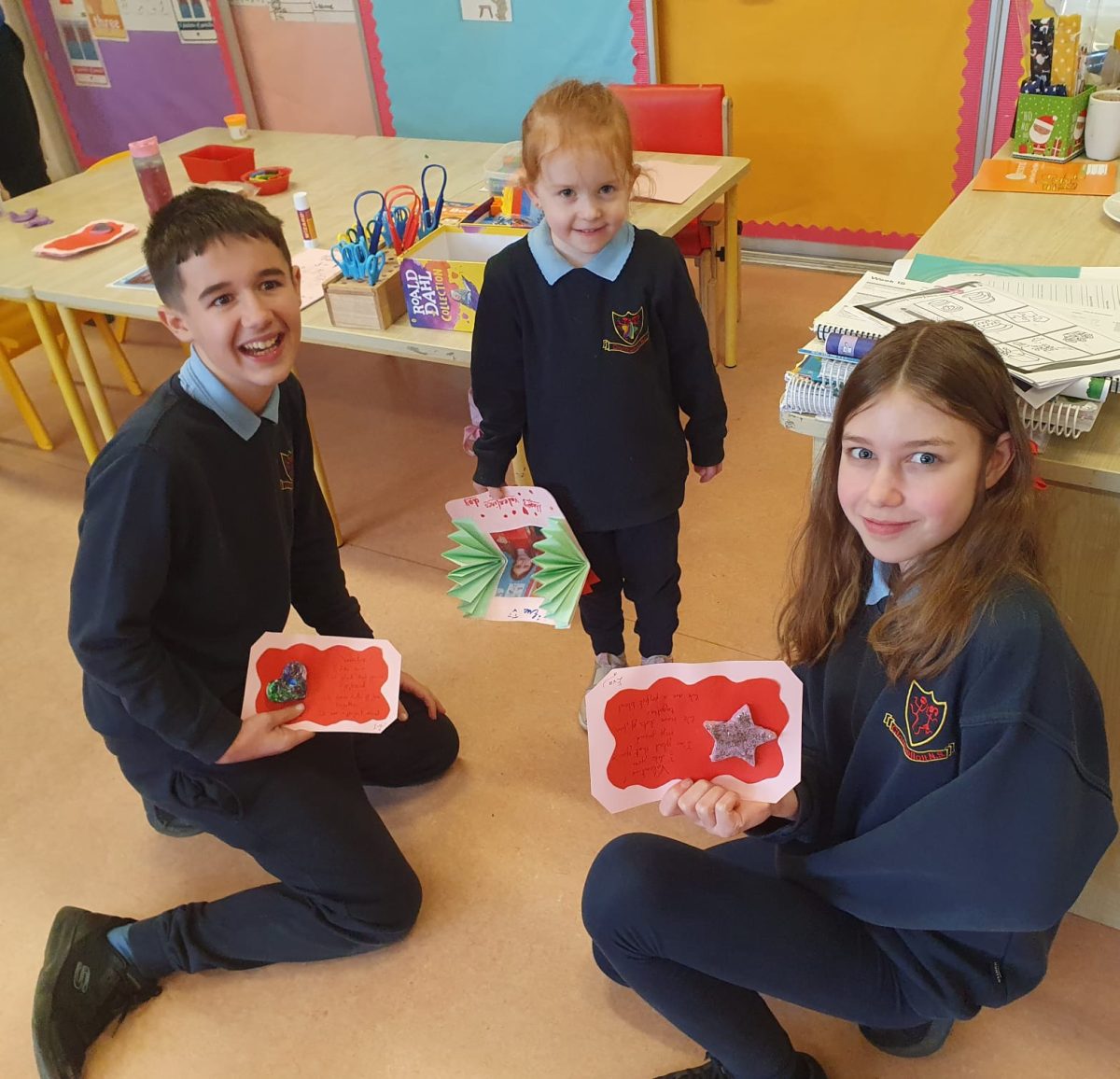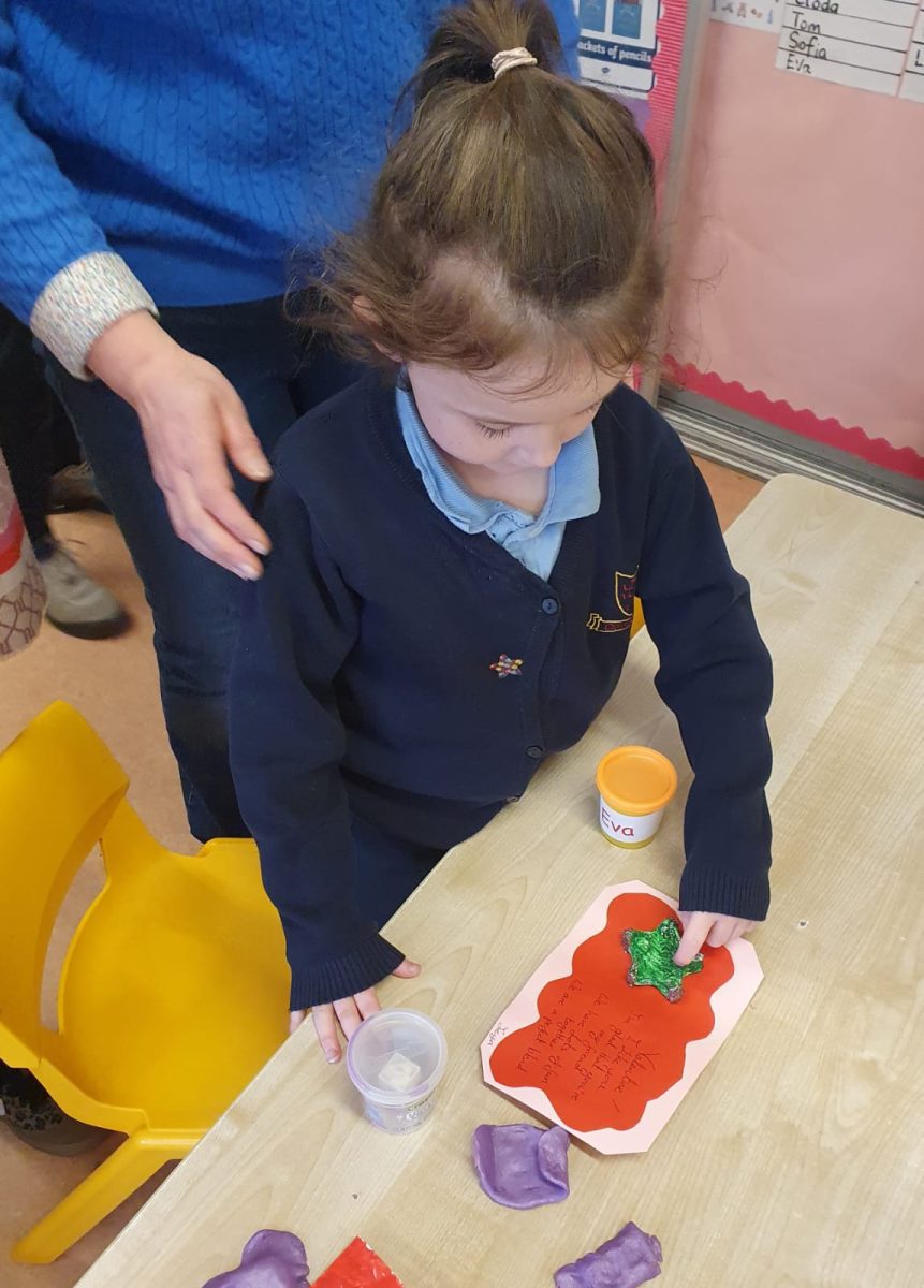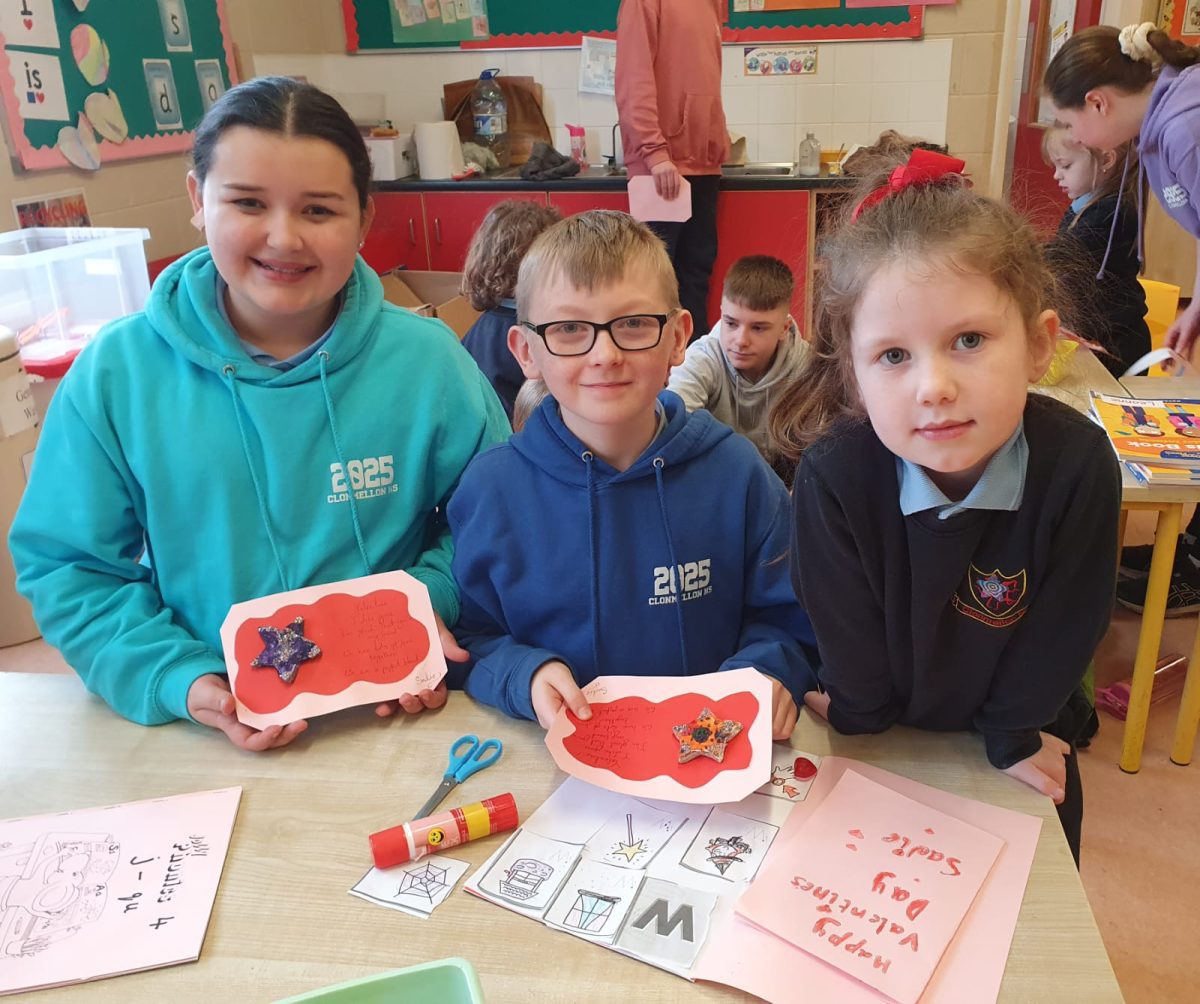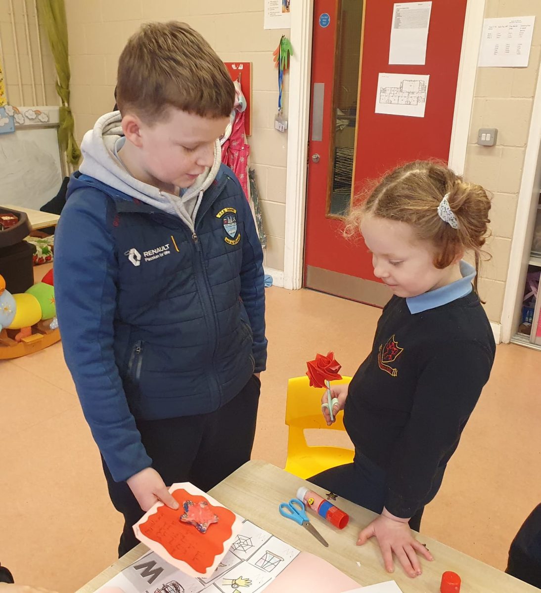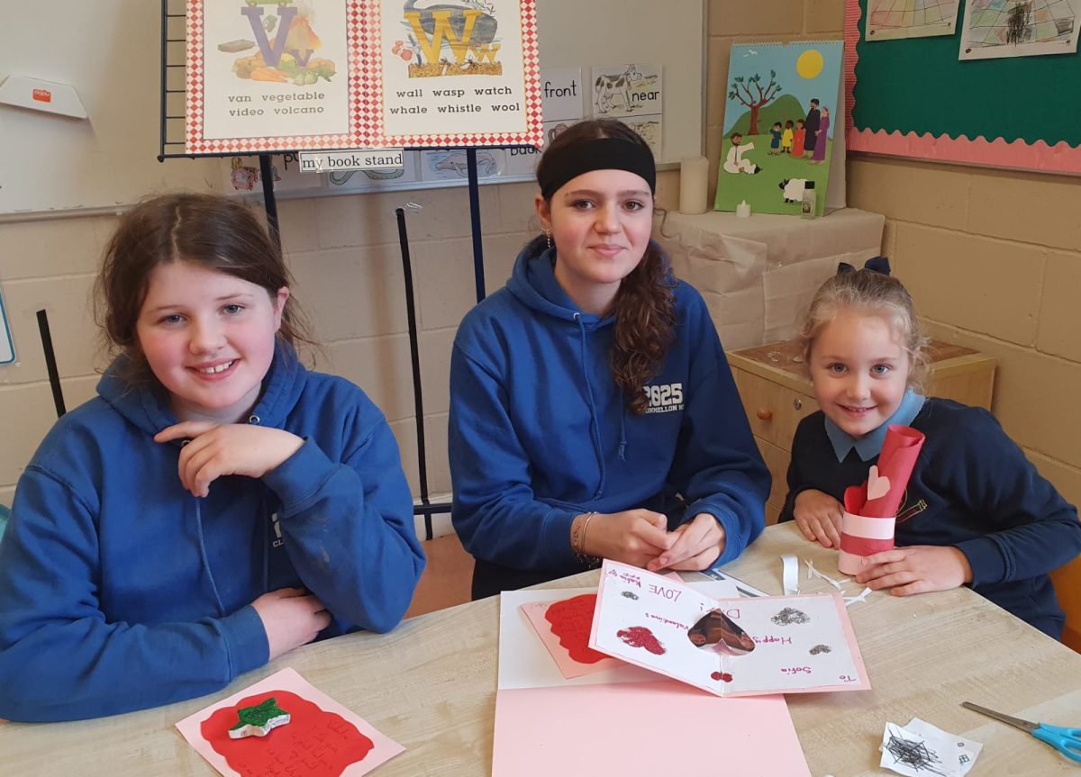 Valentines art with Junior Infants Buddies