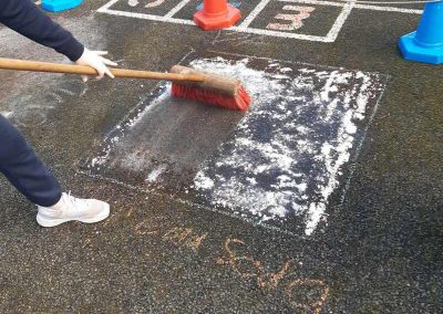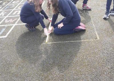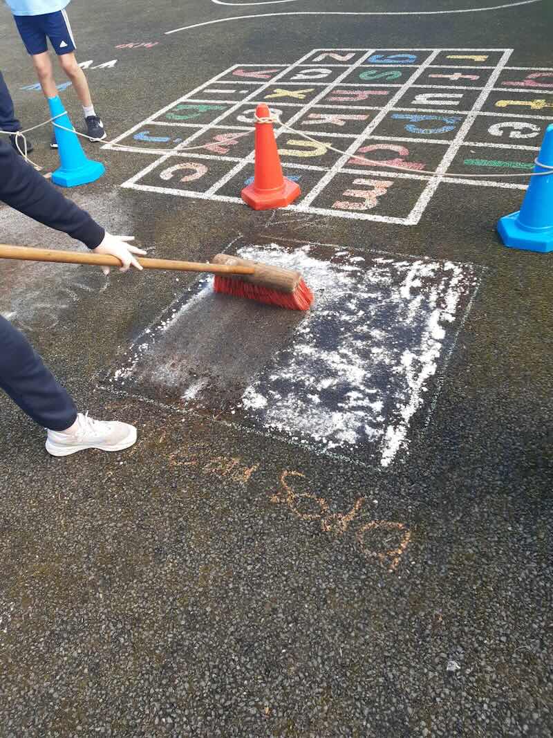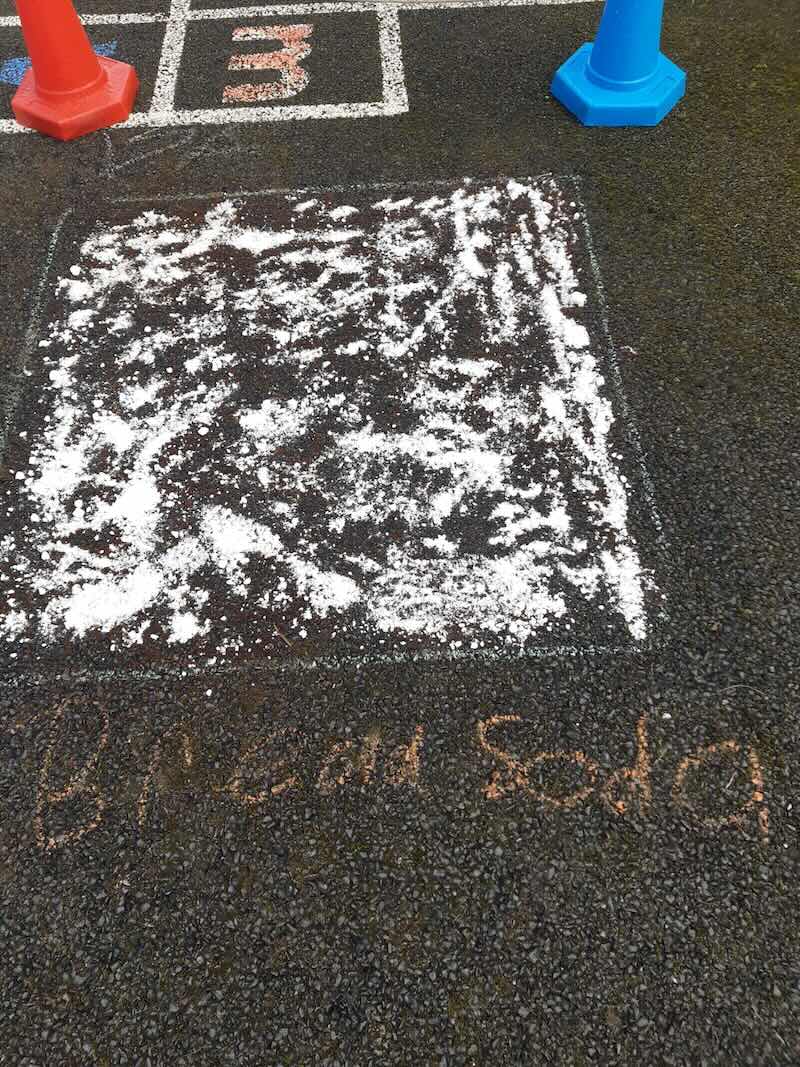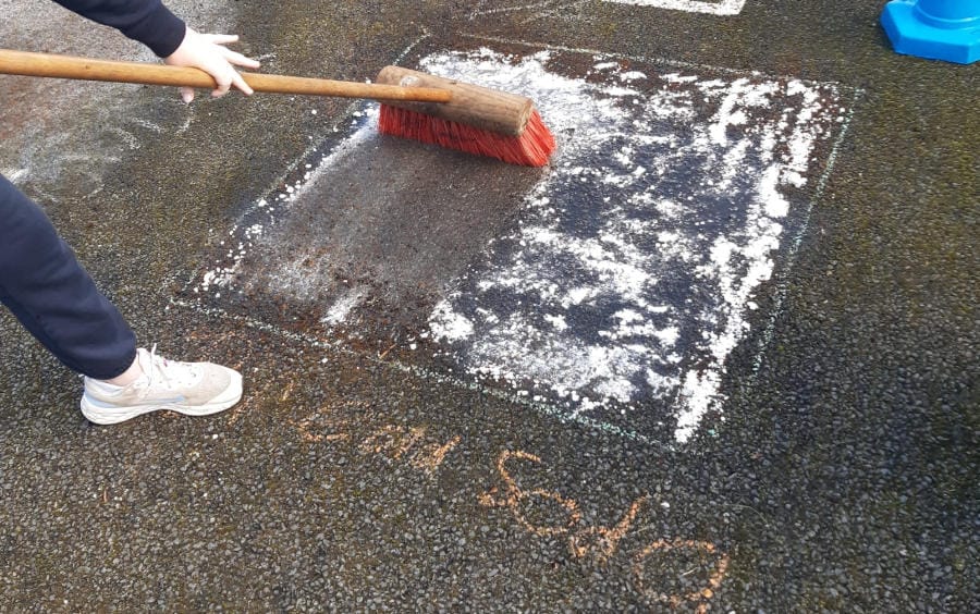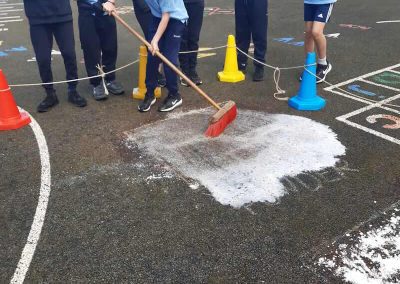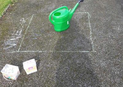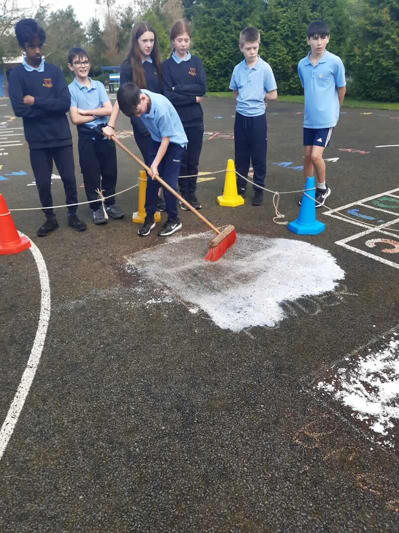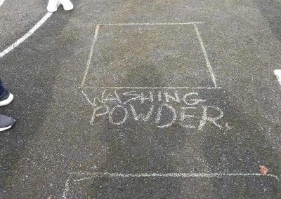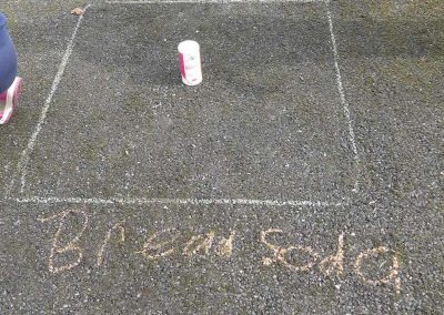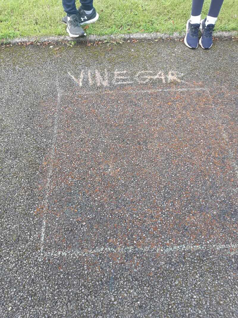 6th experimenting on the best way to get rid off Moss. They created different squares and put different products in each to see which one if any would kill the moss. The used Bread Soda, Vinegar, Washing Powder. Then the wait!